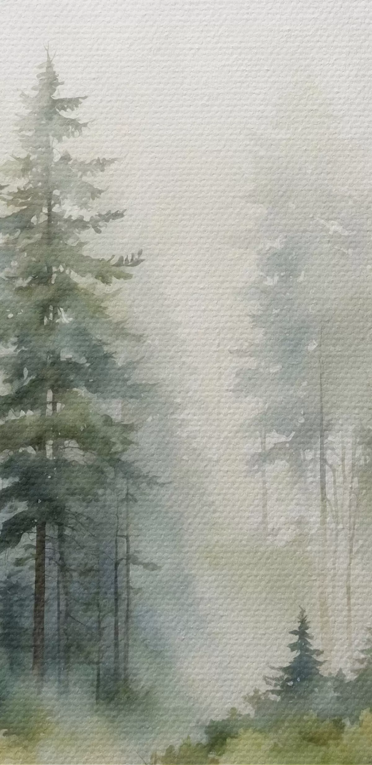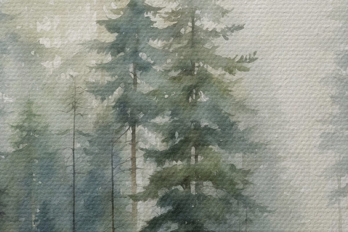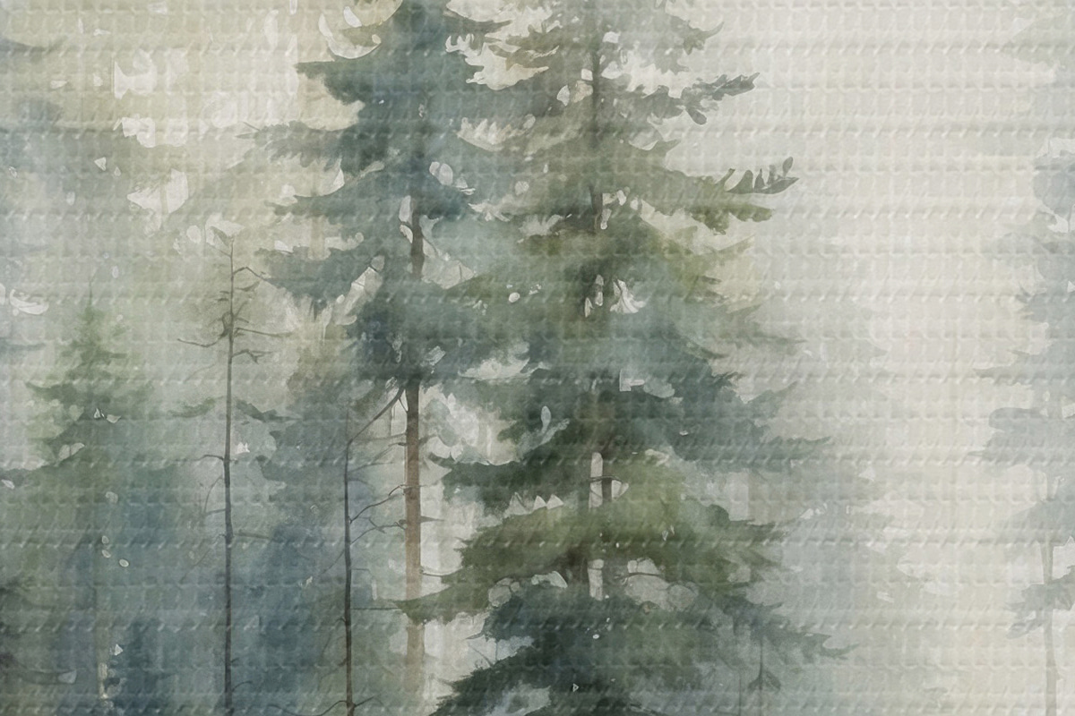 Apaļas gleznas Skujkoku mežs miglā r37337
