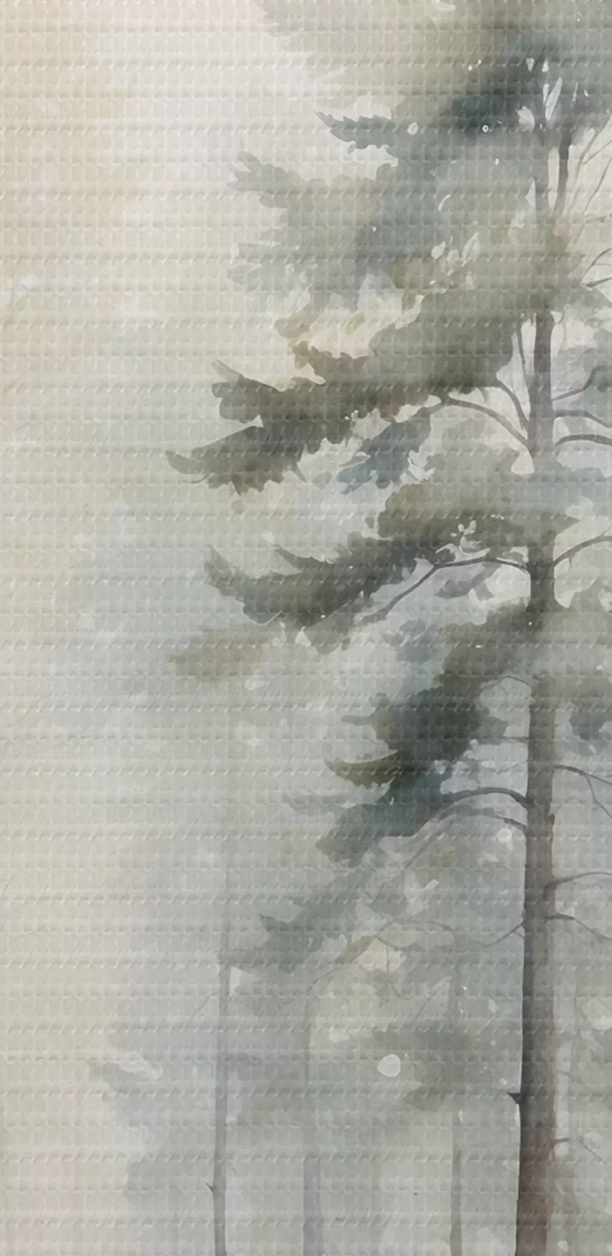 Smalkais diegu pinums uz šī audekla atgādina profesionālu mākslinieku audeklu virsmu.