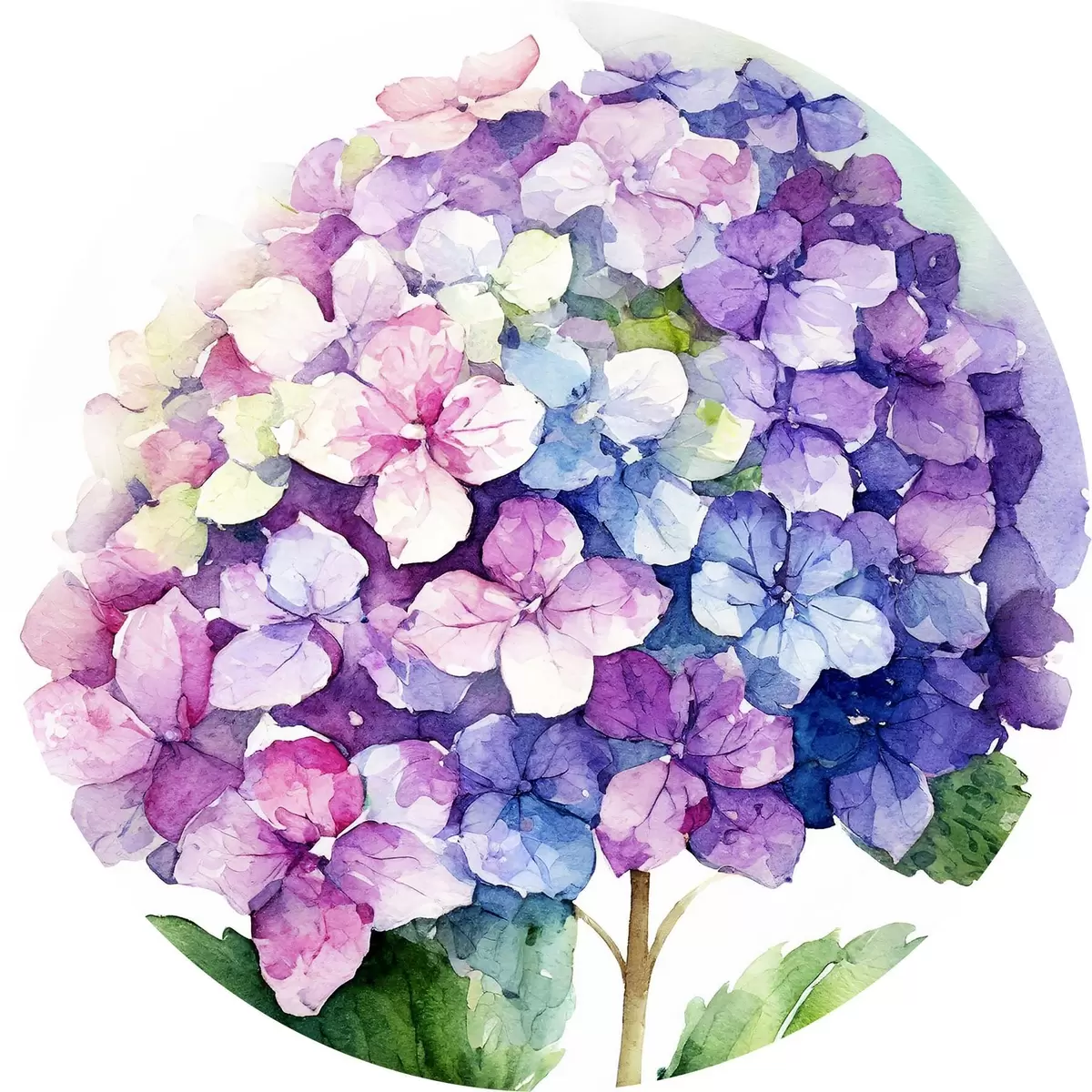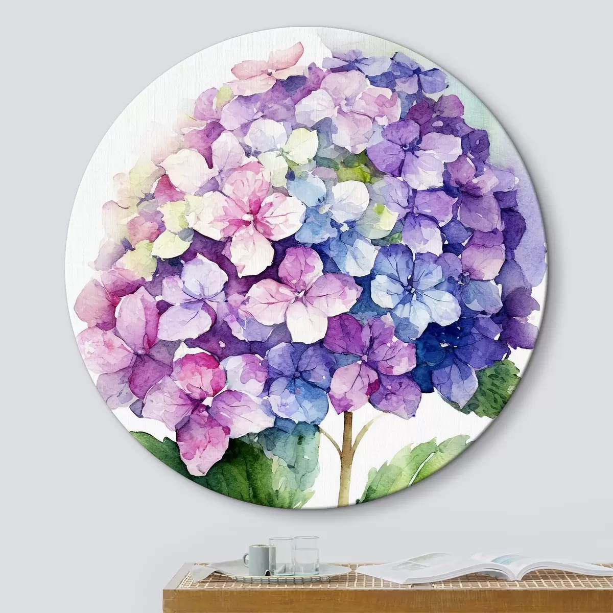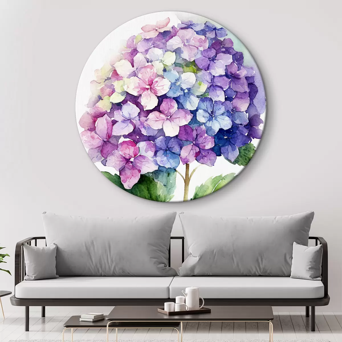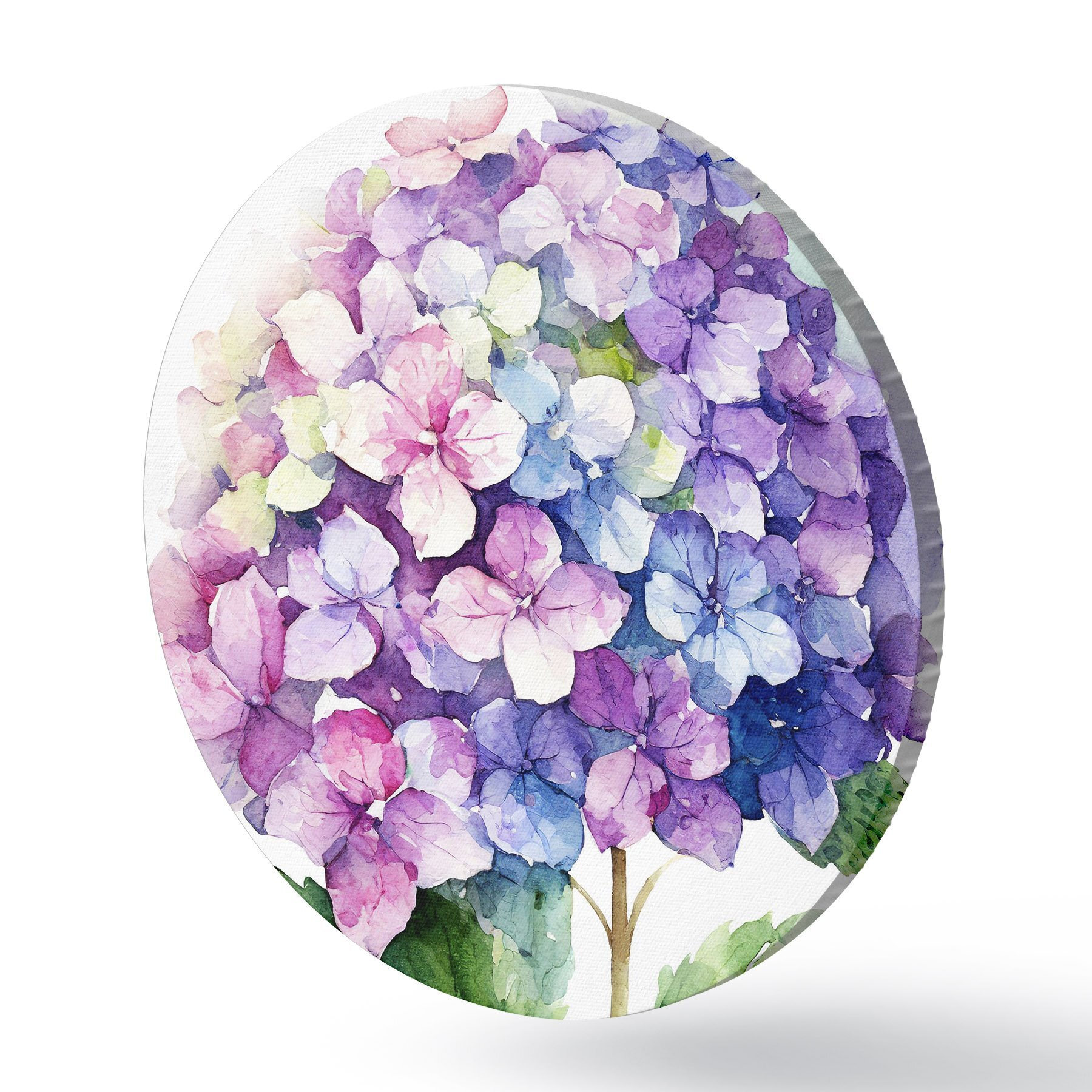 Apaļas gleznas Akvareļu hortenzijas, ziedu ilustrācija, minimālisms r37344