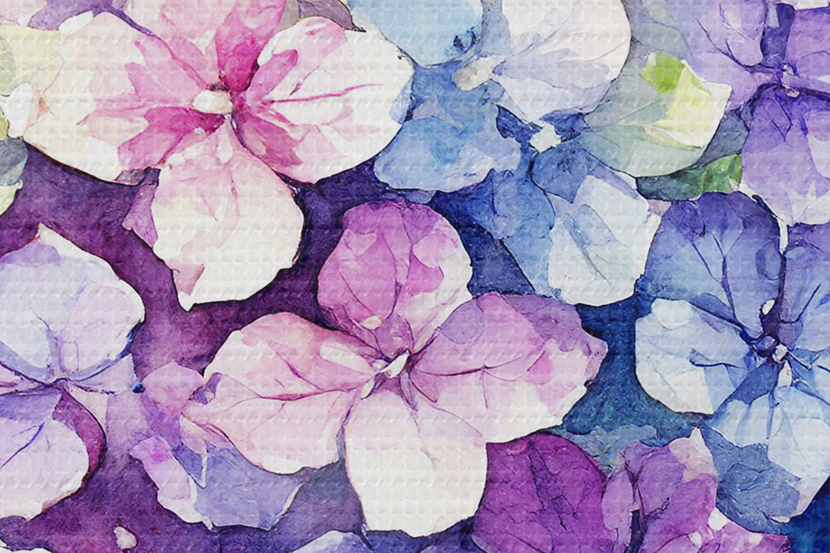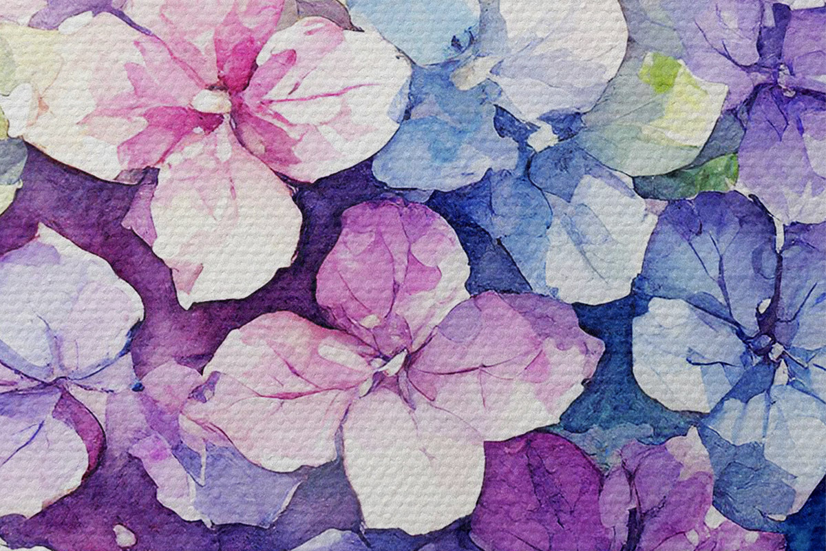 Attēls Akvareļu hortenzijas, ziedu ilustrācija, minimālisms Nr r37344
