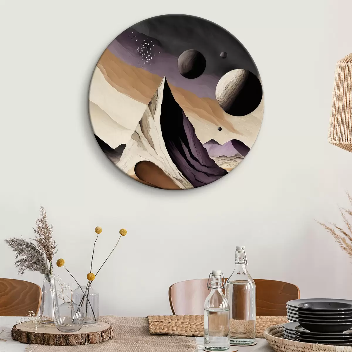 Attēls Abstraktā māksla, tuksnesis, kalni un klintis, violeta un bēša, telpa Nr r37362