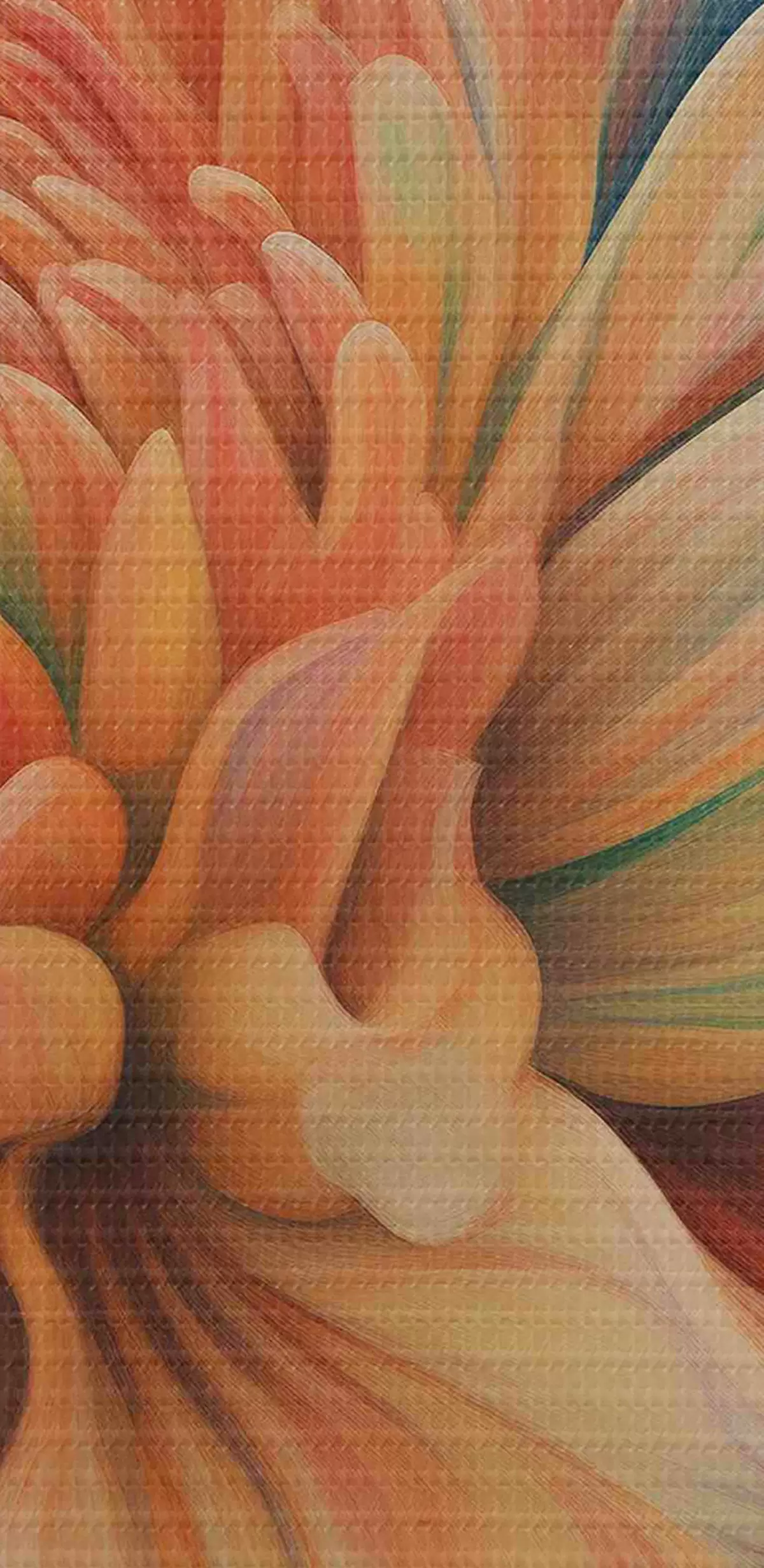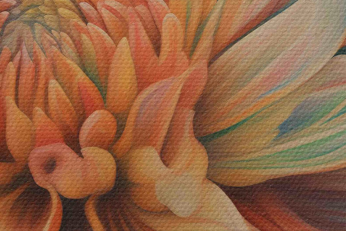 Smalkais diegu pinums uz šī audekla atgādina profesionālu mākslinieku audeklu virsmu.