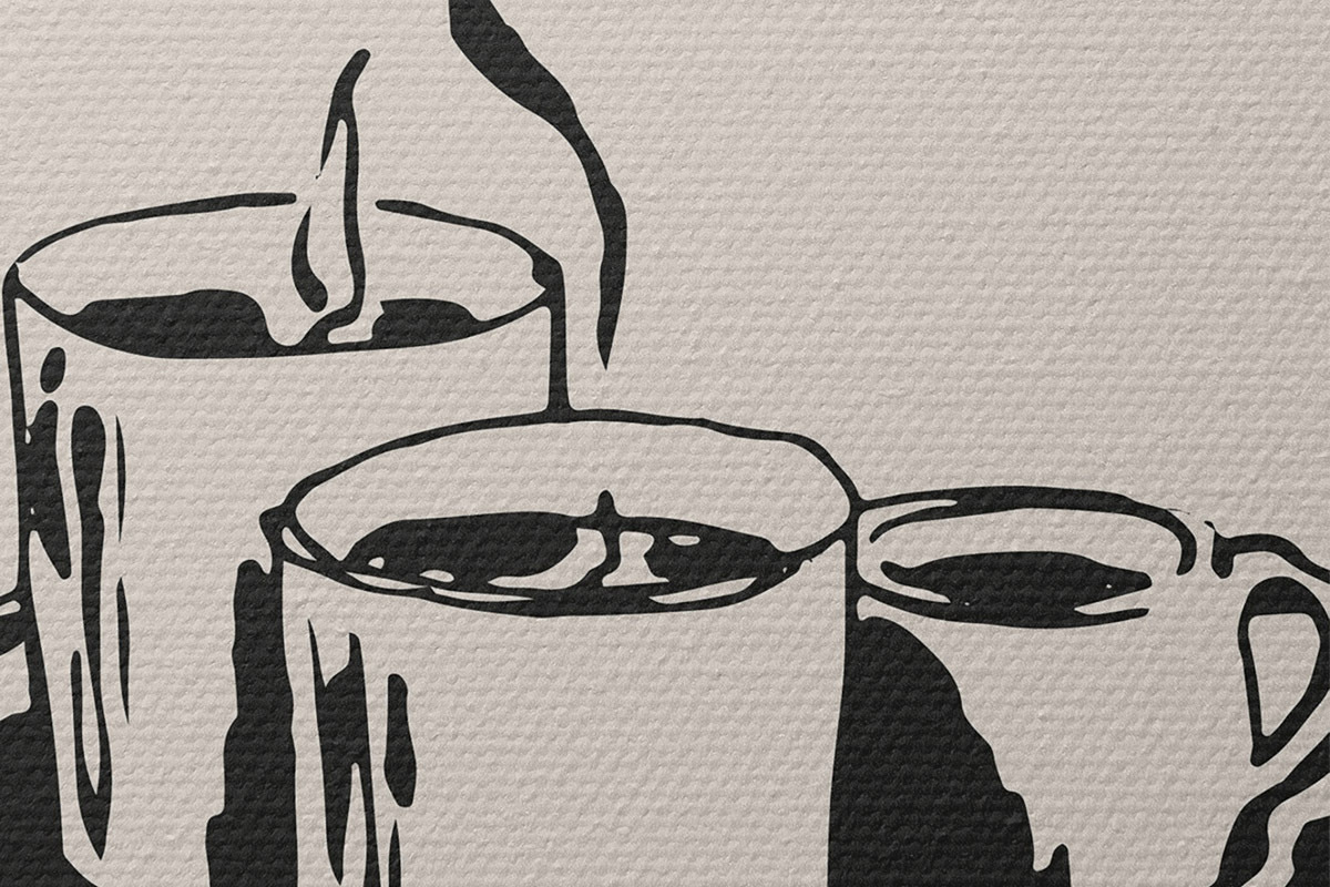 Attēls Paplātes ar kafijas tasītēm zīmējums Nr r37405