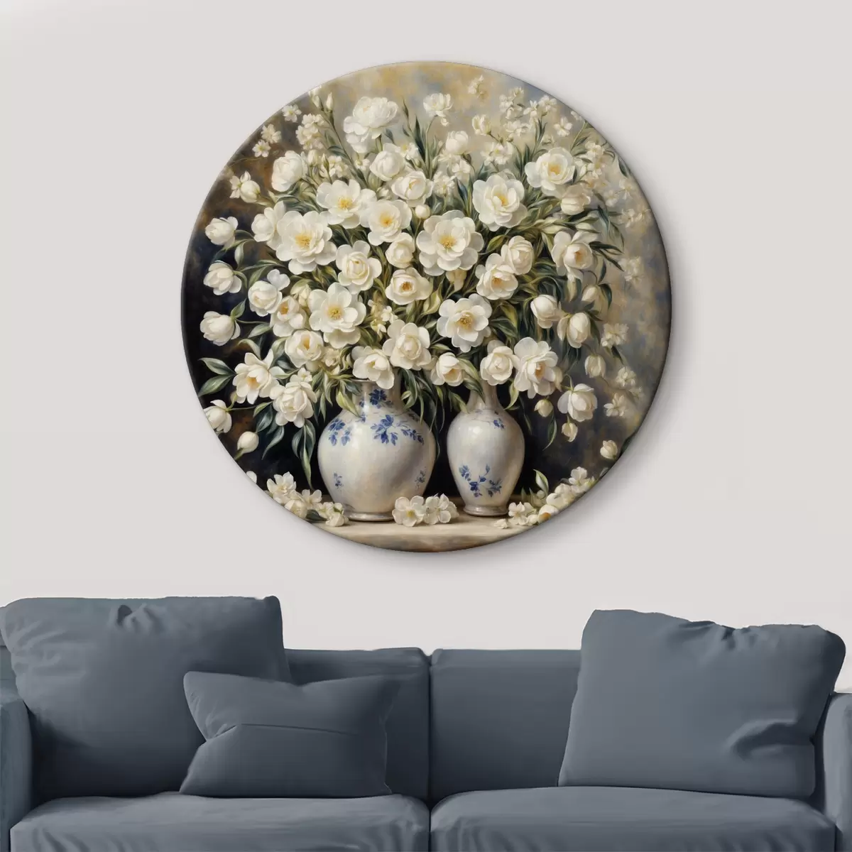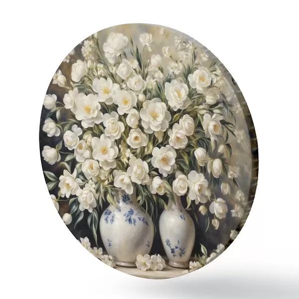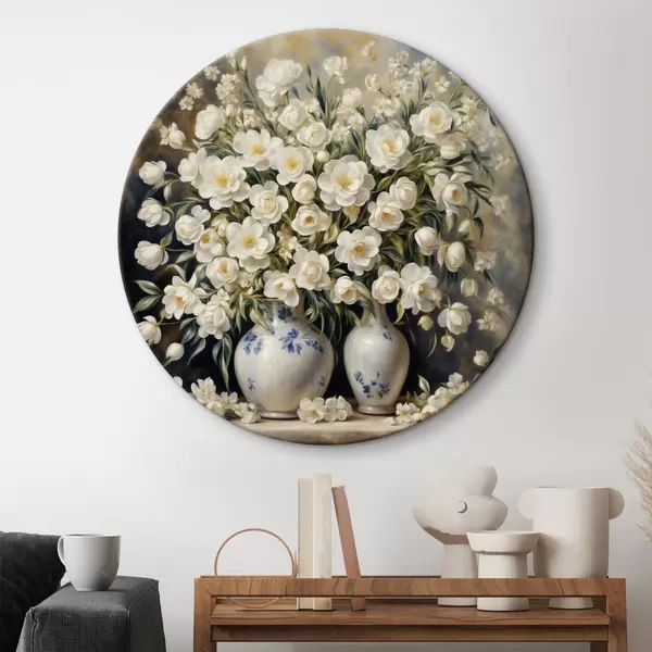 Apaļas gleznas Balta vāze ar lielu baltu ziedu pušķi r37440
