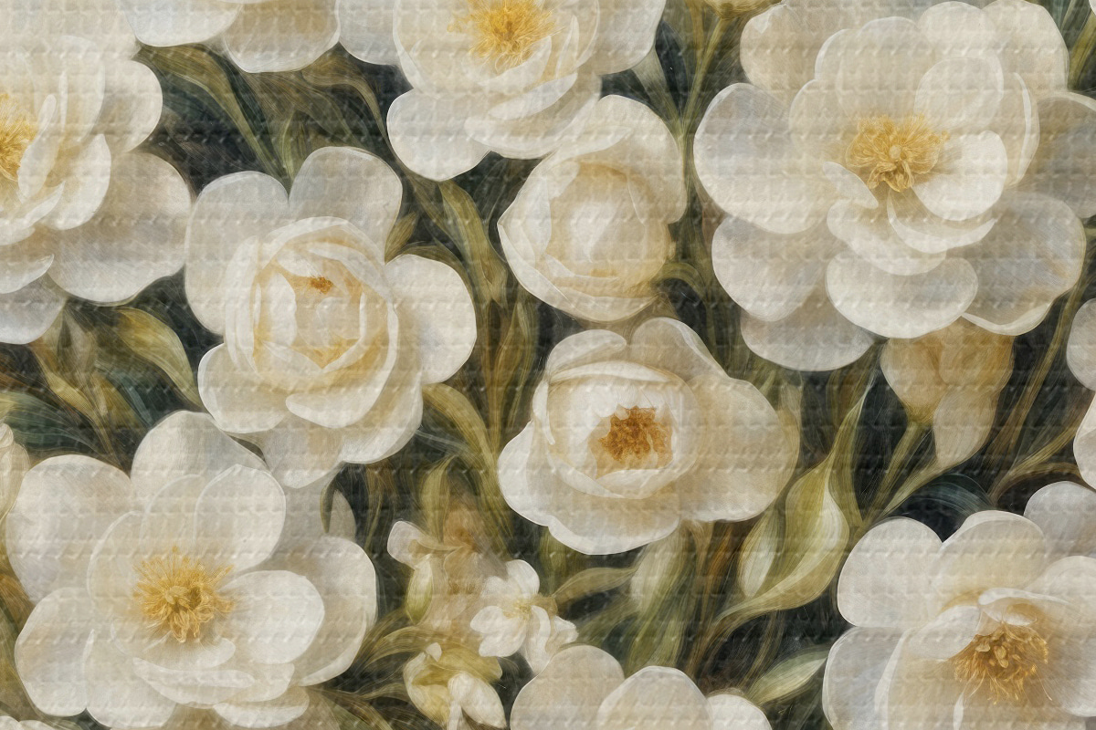 Smalkais diegu pinums uz šī audekla atgādina profesionālu mākslinieku audeklu virsmu.