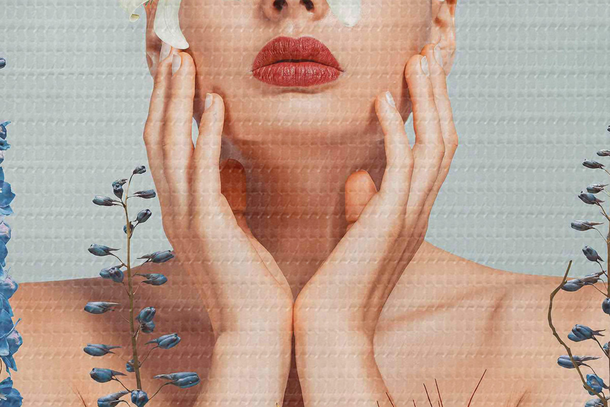 Attēls Sieviete ar ziediem ap seju Nr r37477