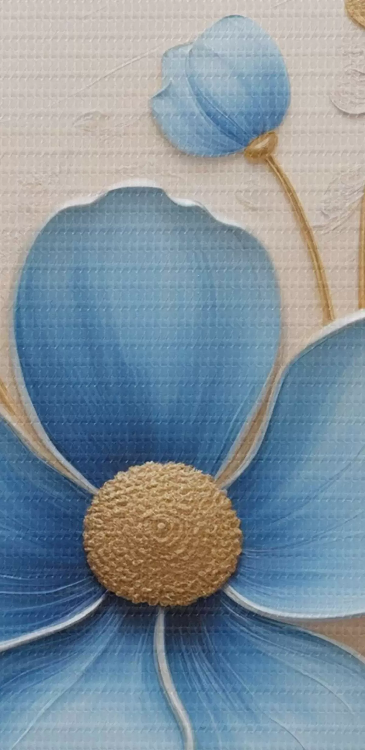 Smalkais diegu pinums uz šī audekla atgādina profesionālu mākslinieku audeklu virsmu.