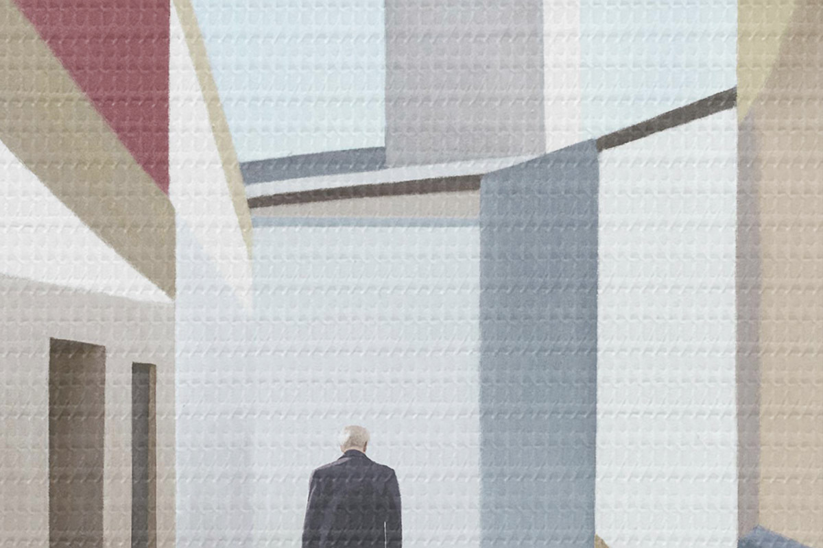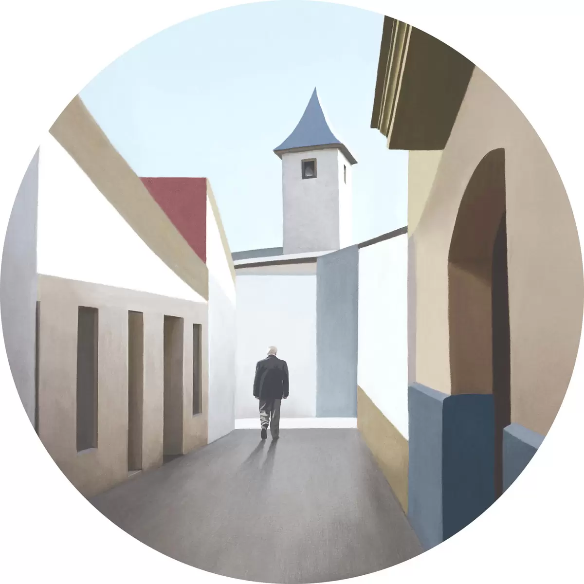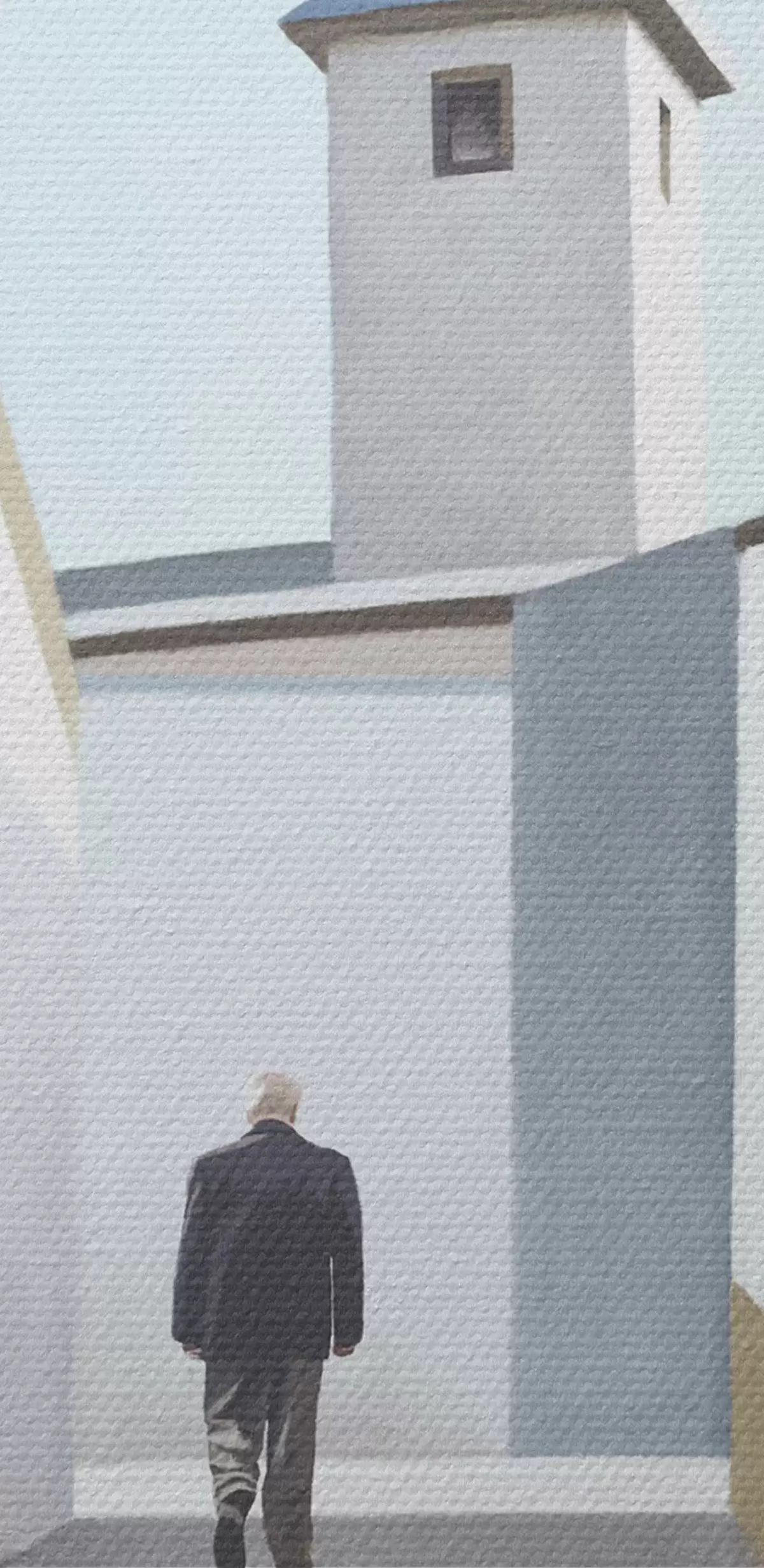 Attēls Vīrietis, kas iet pa šauru ielu Nr r37784