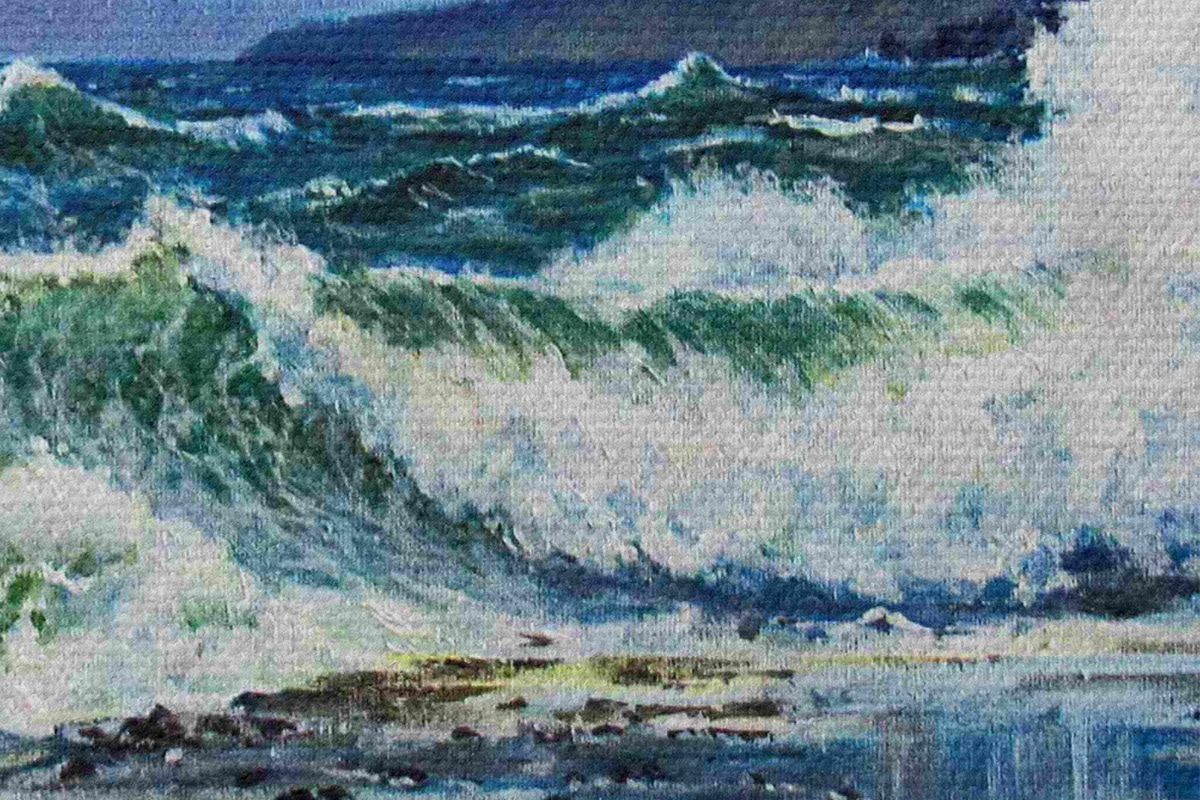 Smalkais diegu pinums uz šī audekla atgādina profesionālu mākslinieku audeklu virsmu.