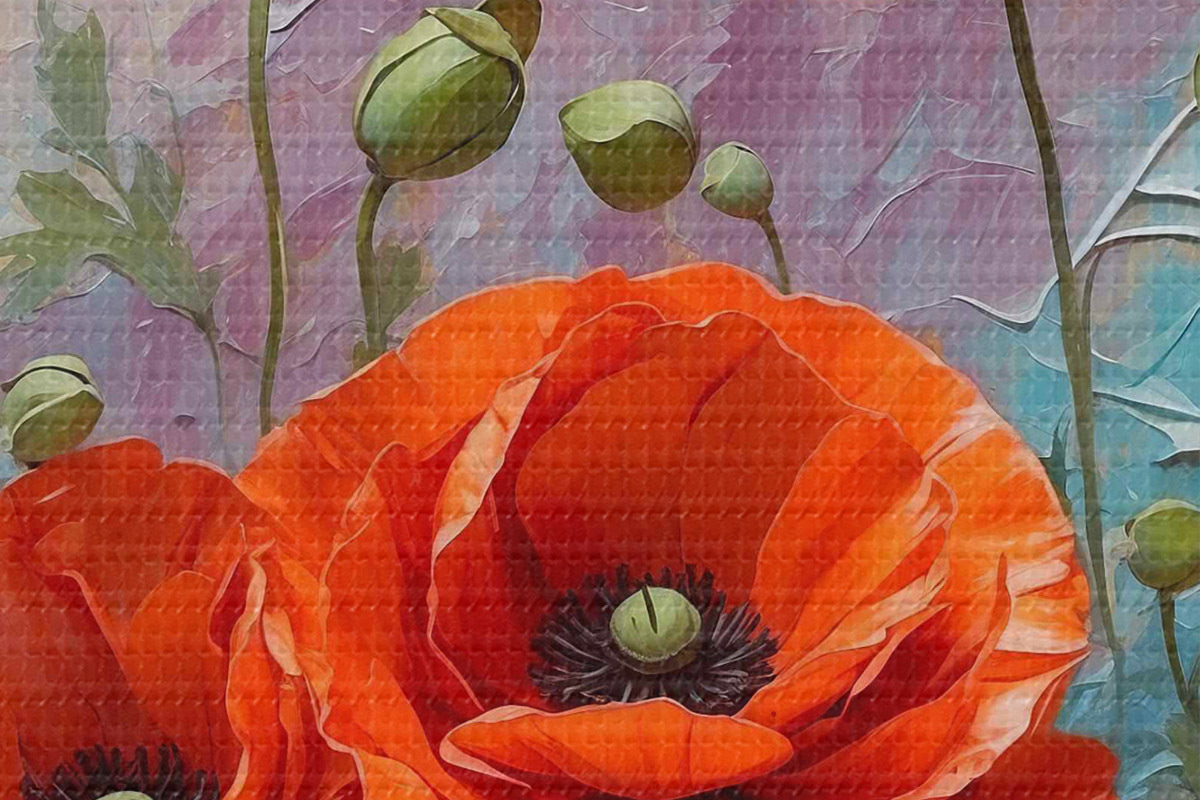 Smalkais diegu pinums uz šī audekla atgādina profesionālu mākslinieku audeklu virsmu.
