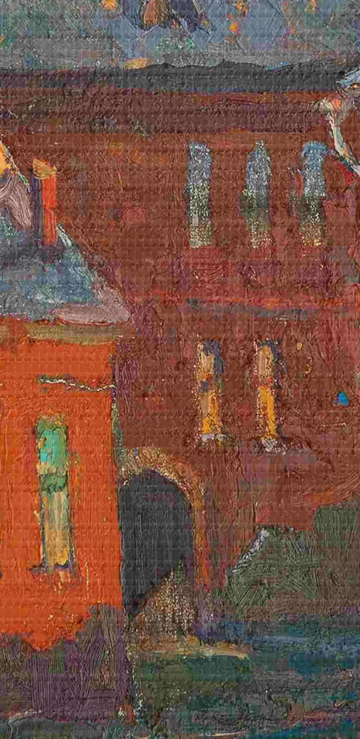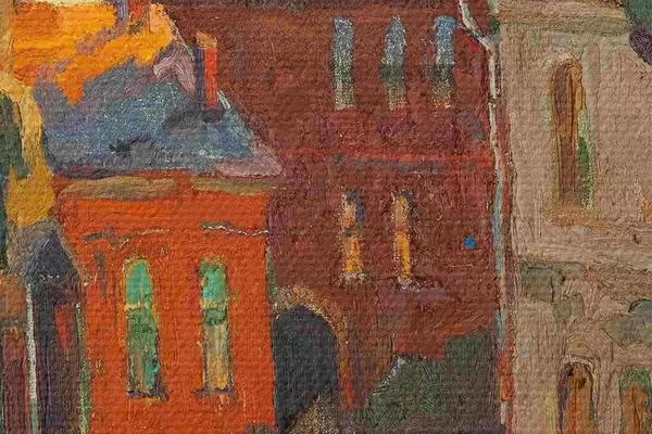Smalkais diegu pinums uz šī audekla atgādina profesionālu mākslinieku audeklu virsmu.