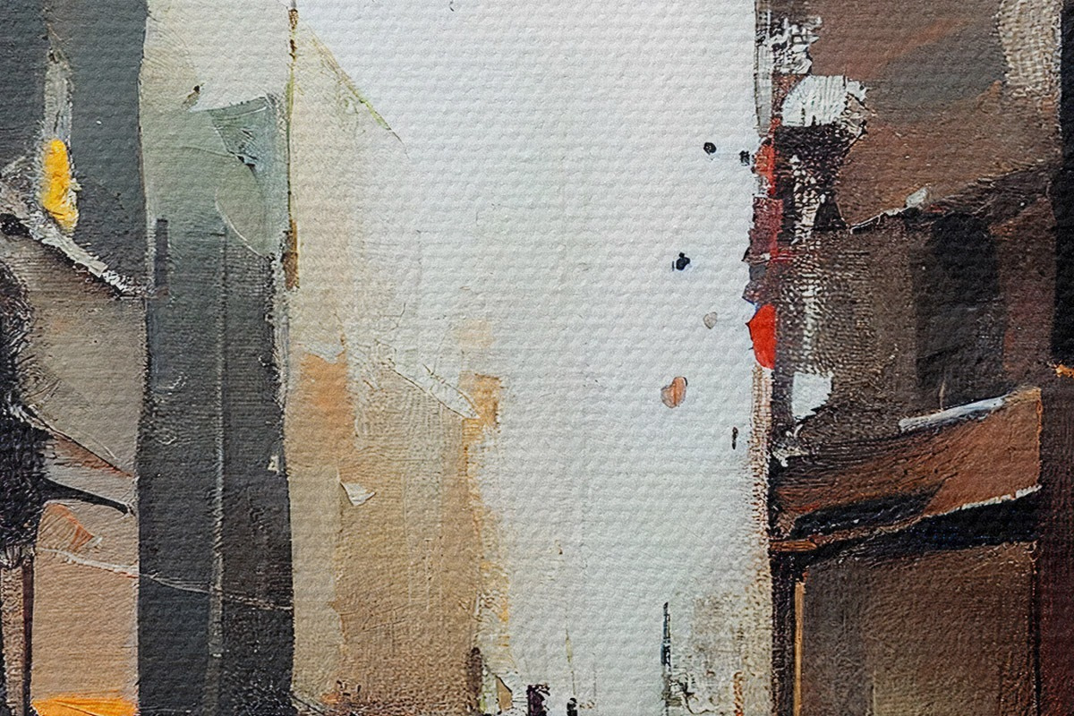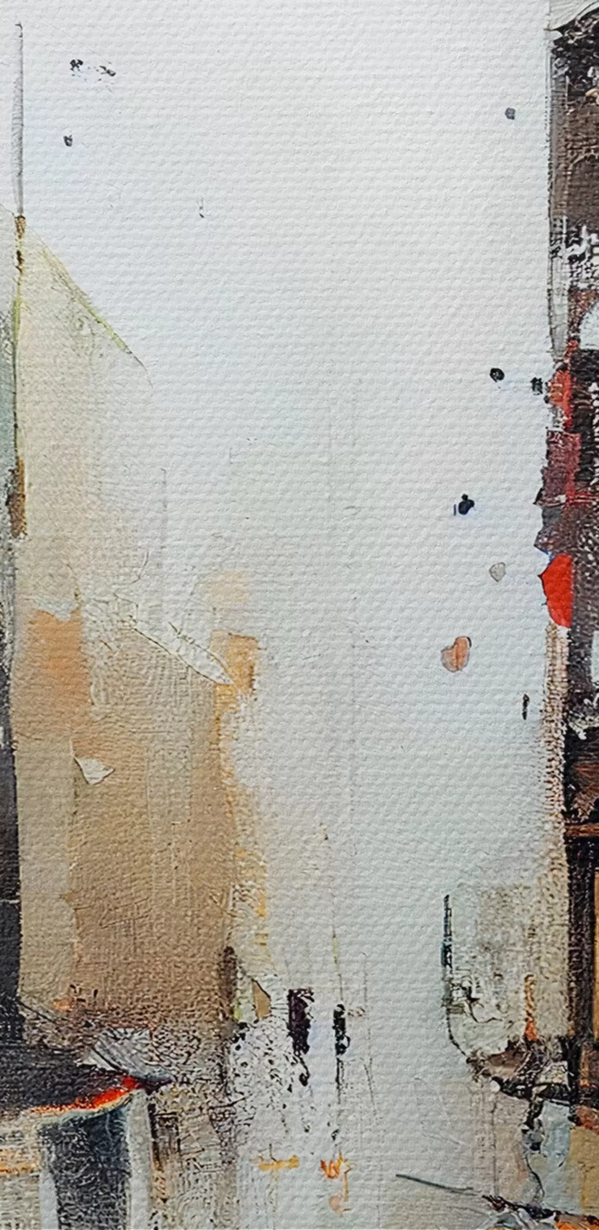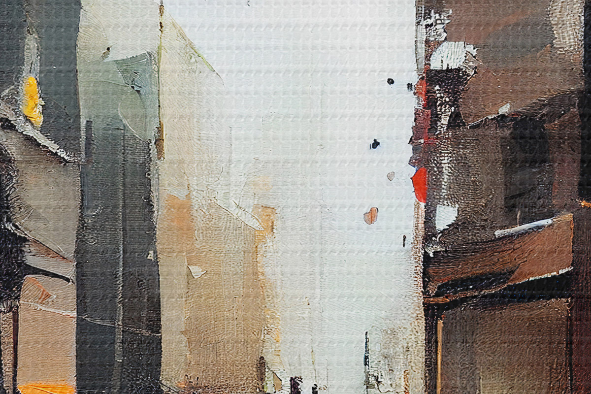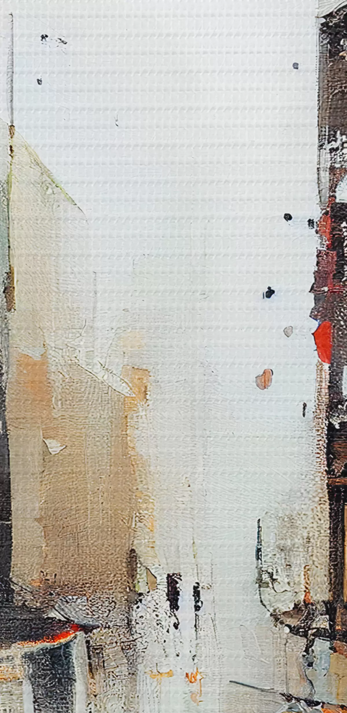 Smalkais diegu pinums uz šī audekla atgādina profesionālu mākslinieku audeklu virsmu.