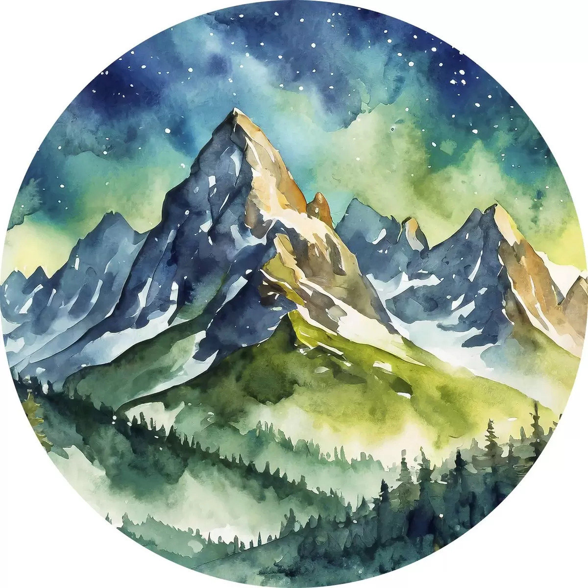 Attēls Majestātiskie kalni zem zvaigžņotām debesīm Nr r37944