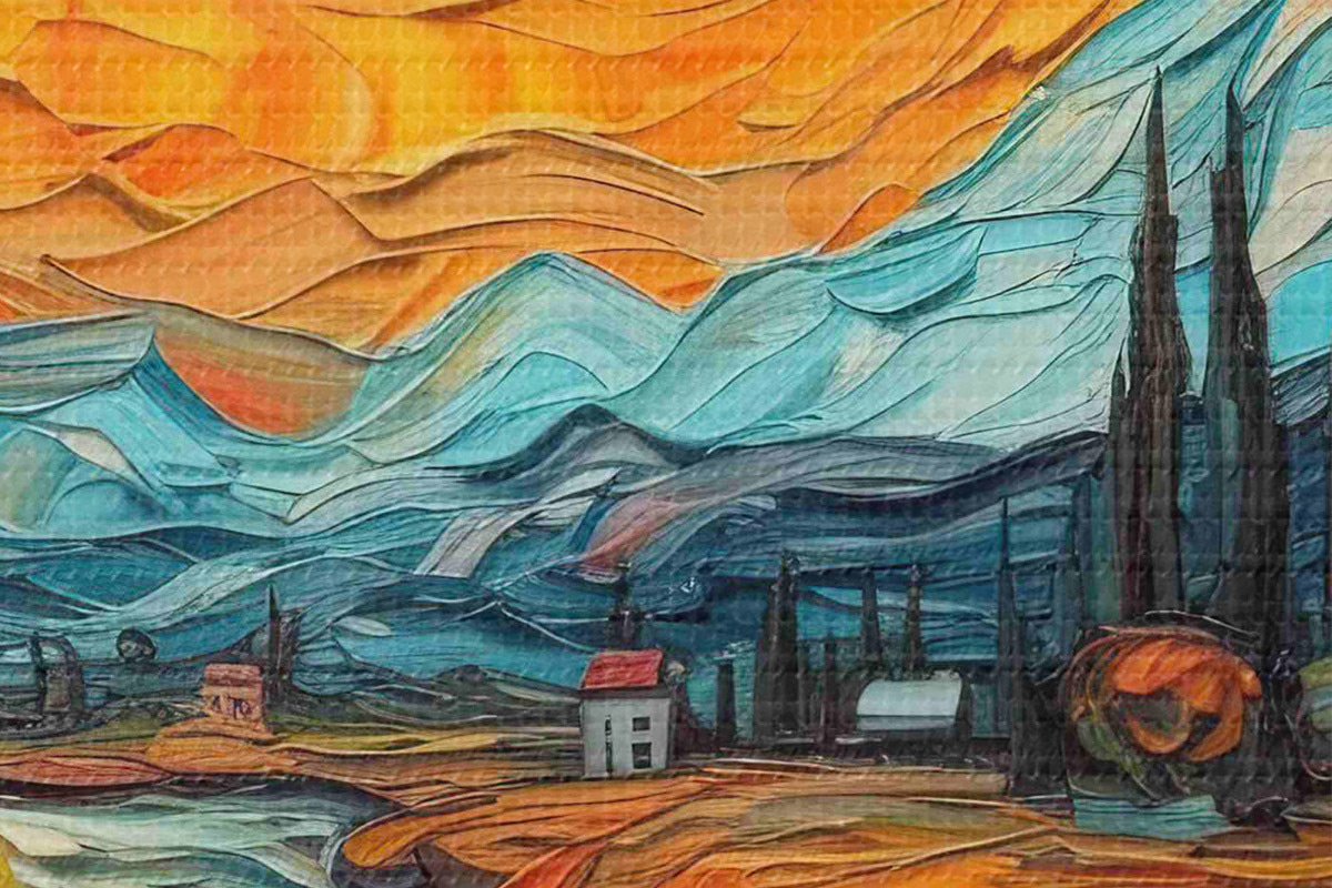 Smalkais diegu pinums uz šī audekla atgādina profesionālu mākslinieku audeklu virsmu.