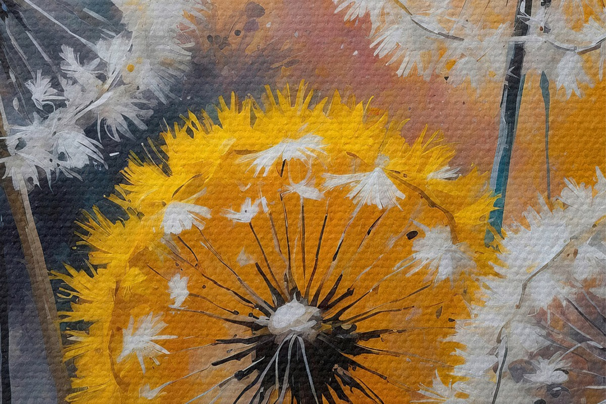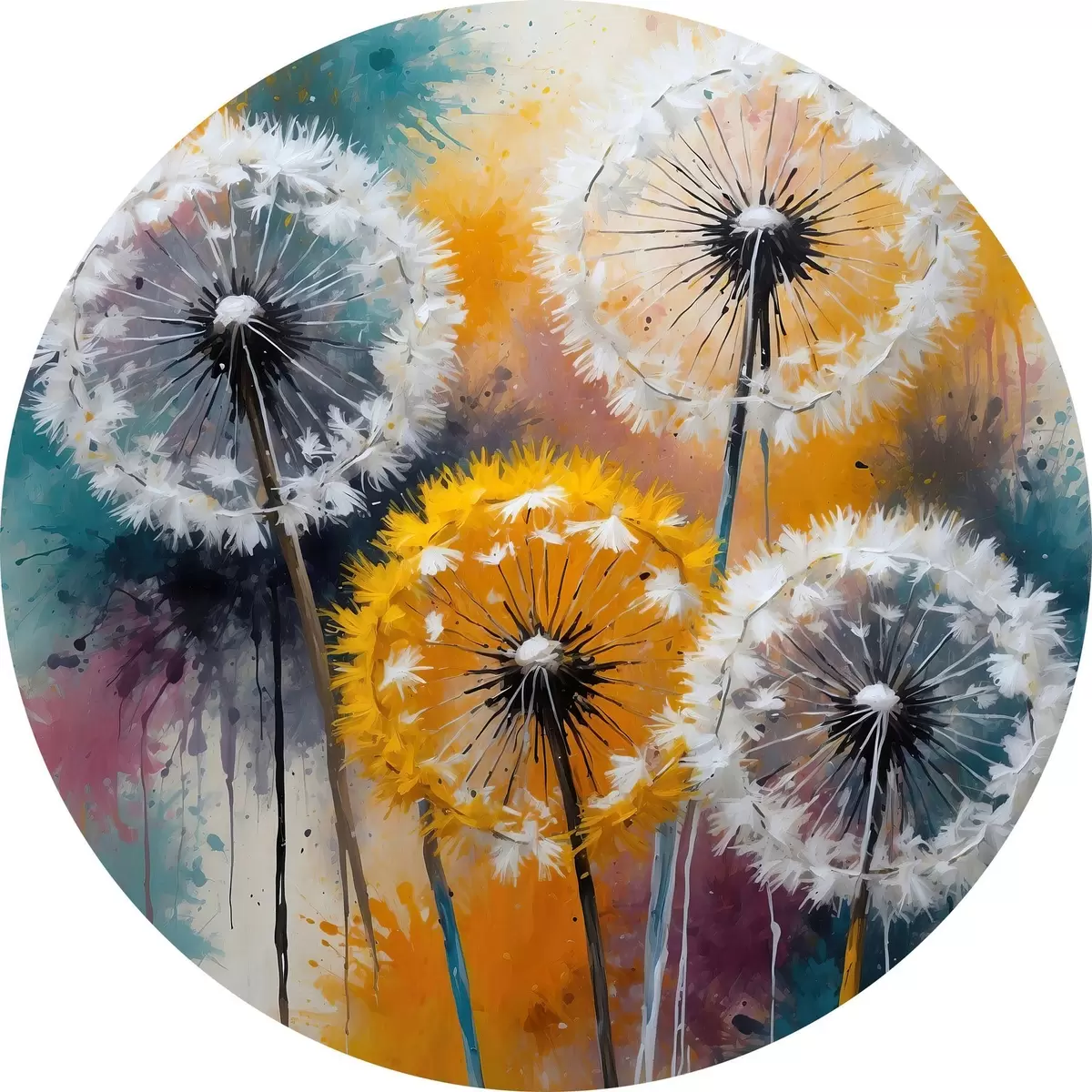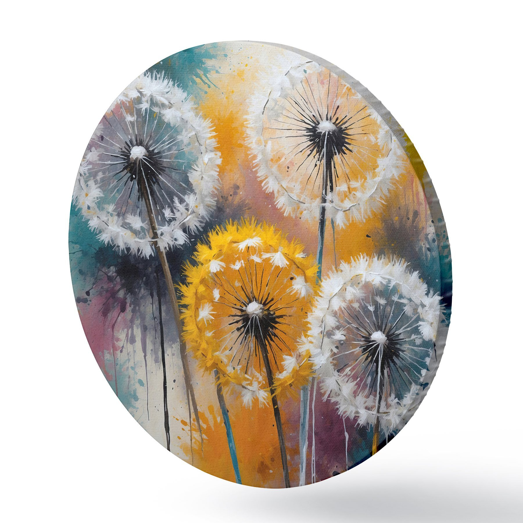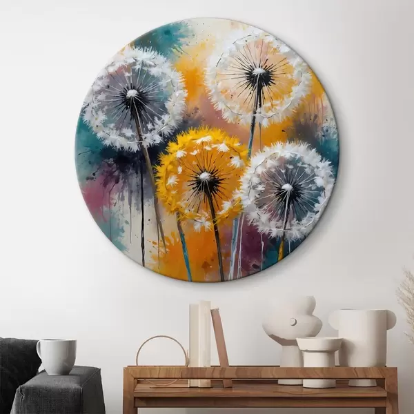 Apaļas gleznas Pienenes uz krāsaina fona r38060