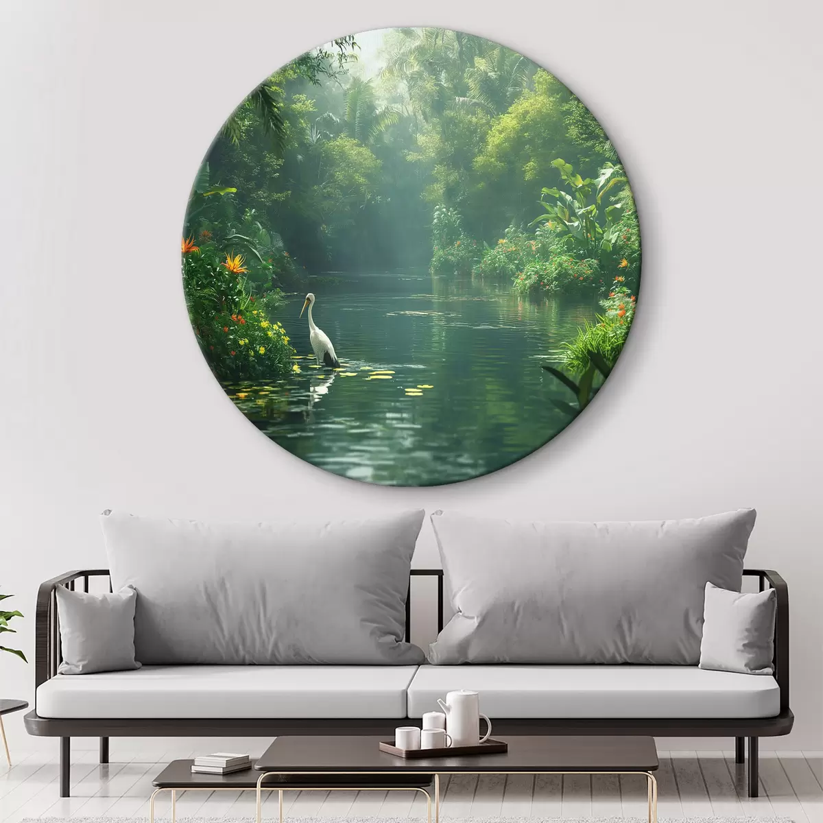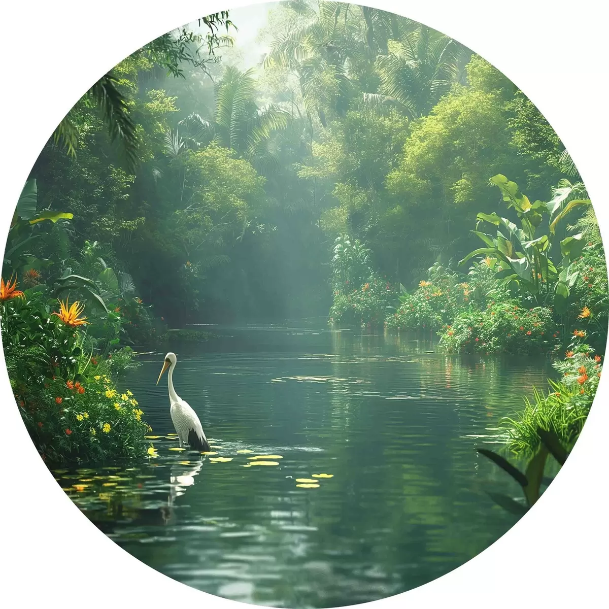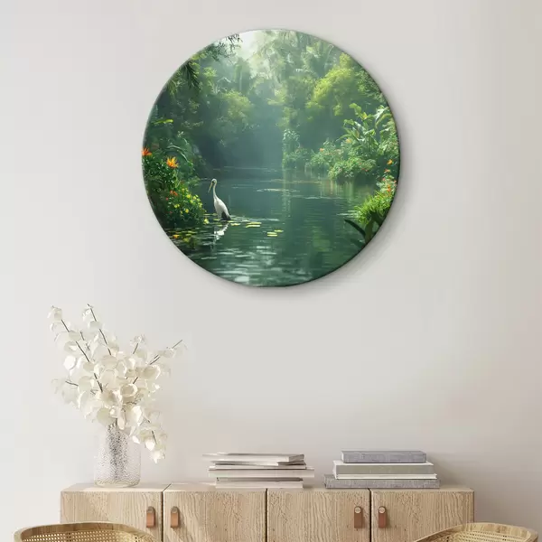 Apaļas gleznas Ezers tropu mežā r38091