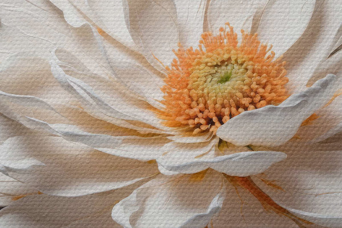 Smalkais diegu pinums uz šī audekla atgādina profesionālu mākslinieku audeklu virsmu.