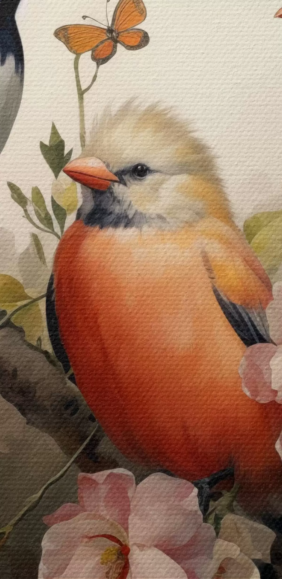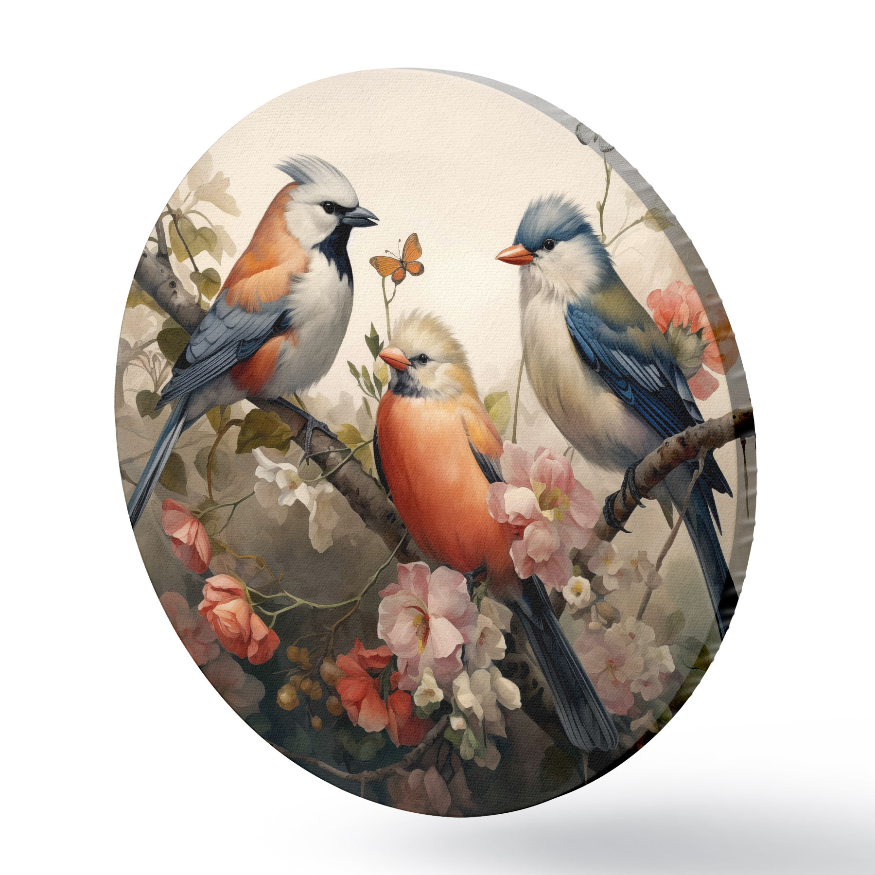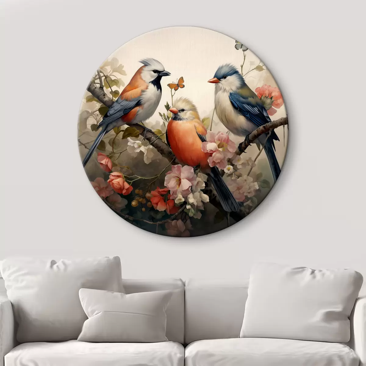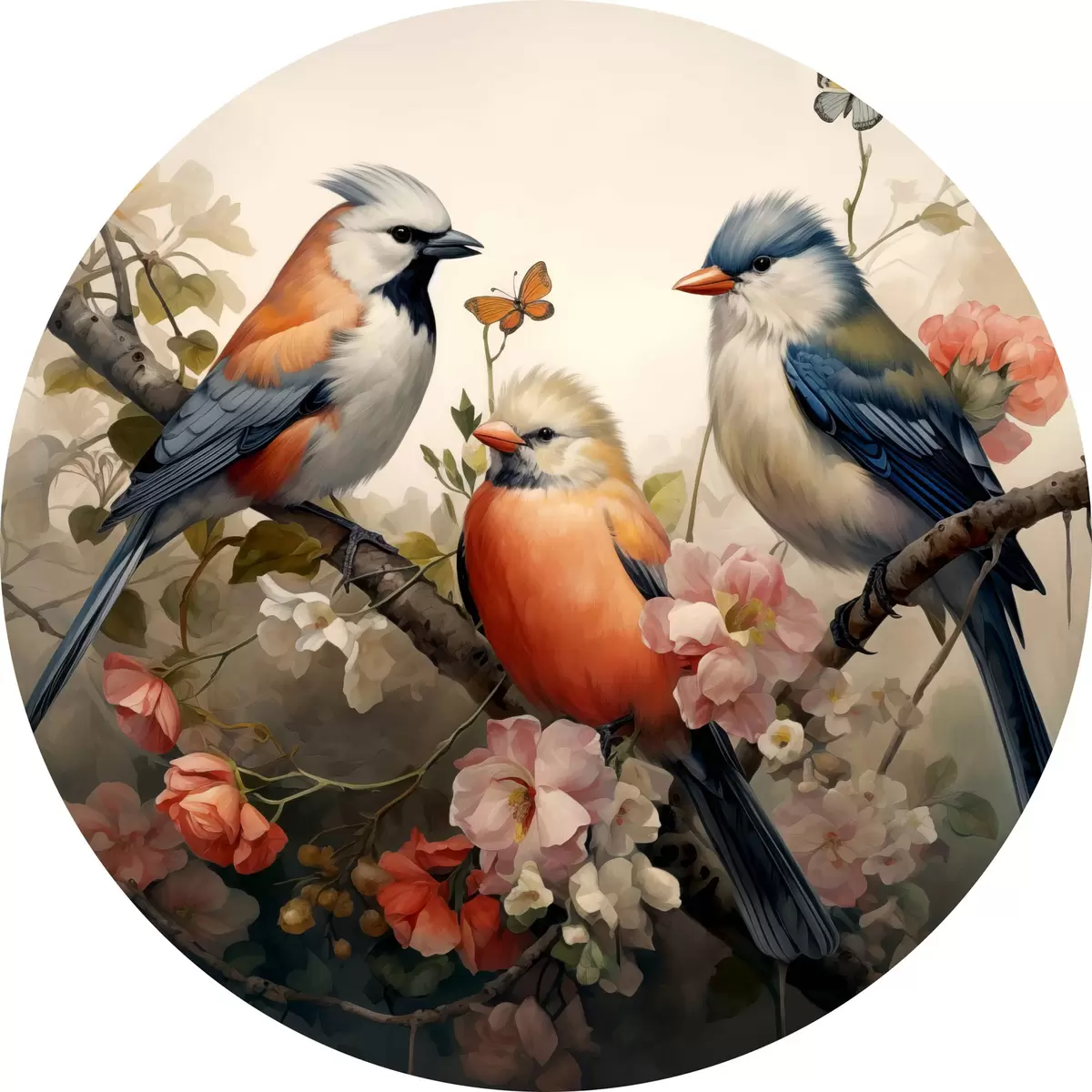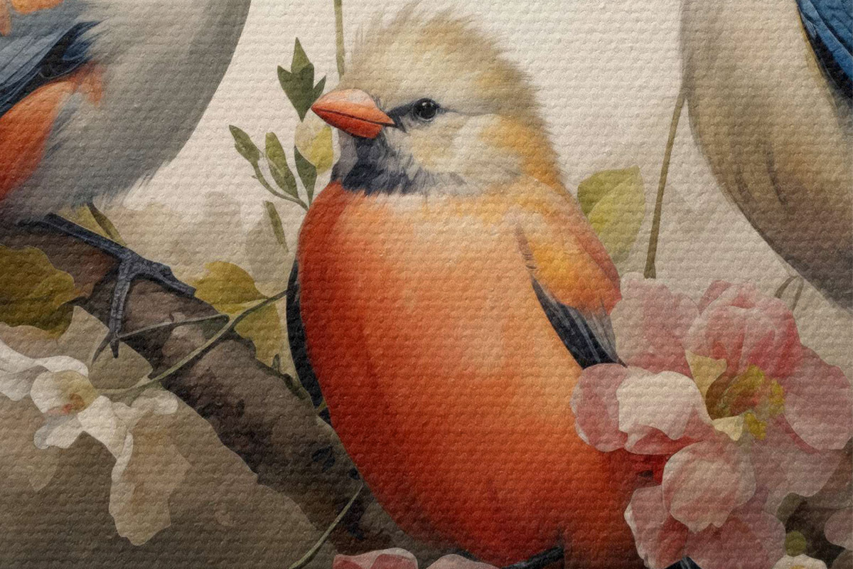 Attēls Putnu grupa uz zara ar ziediem Nr r38103