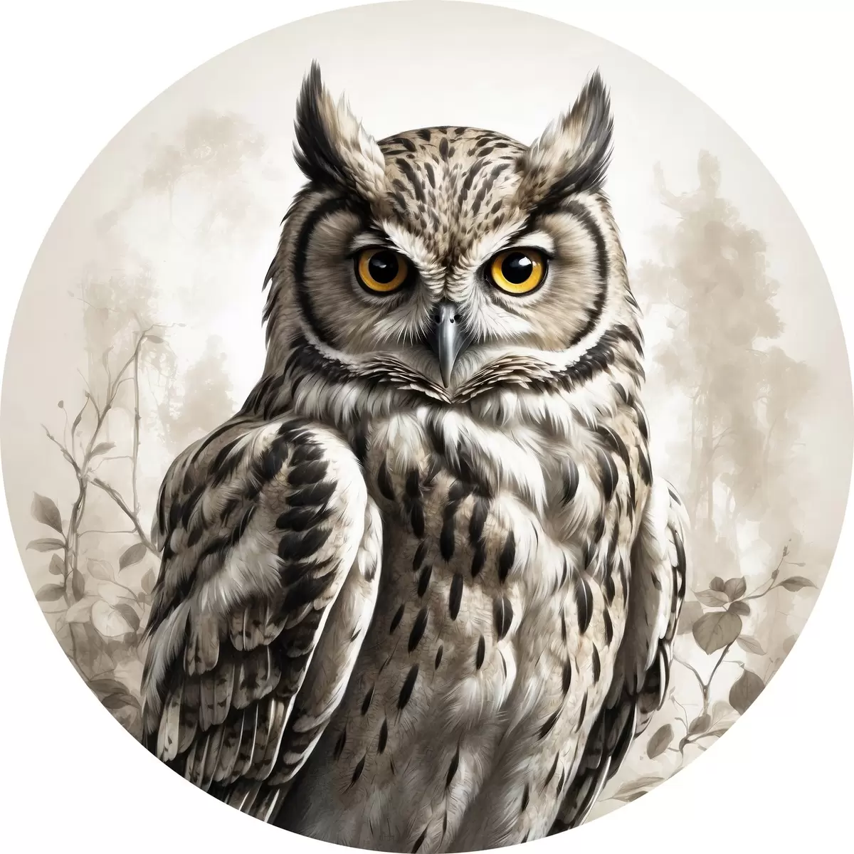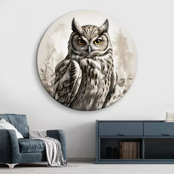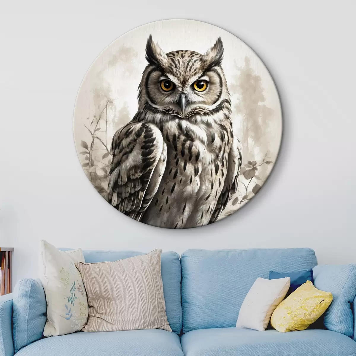 Apaļas gleznas Pūce uz melnbalta fona r38118