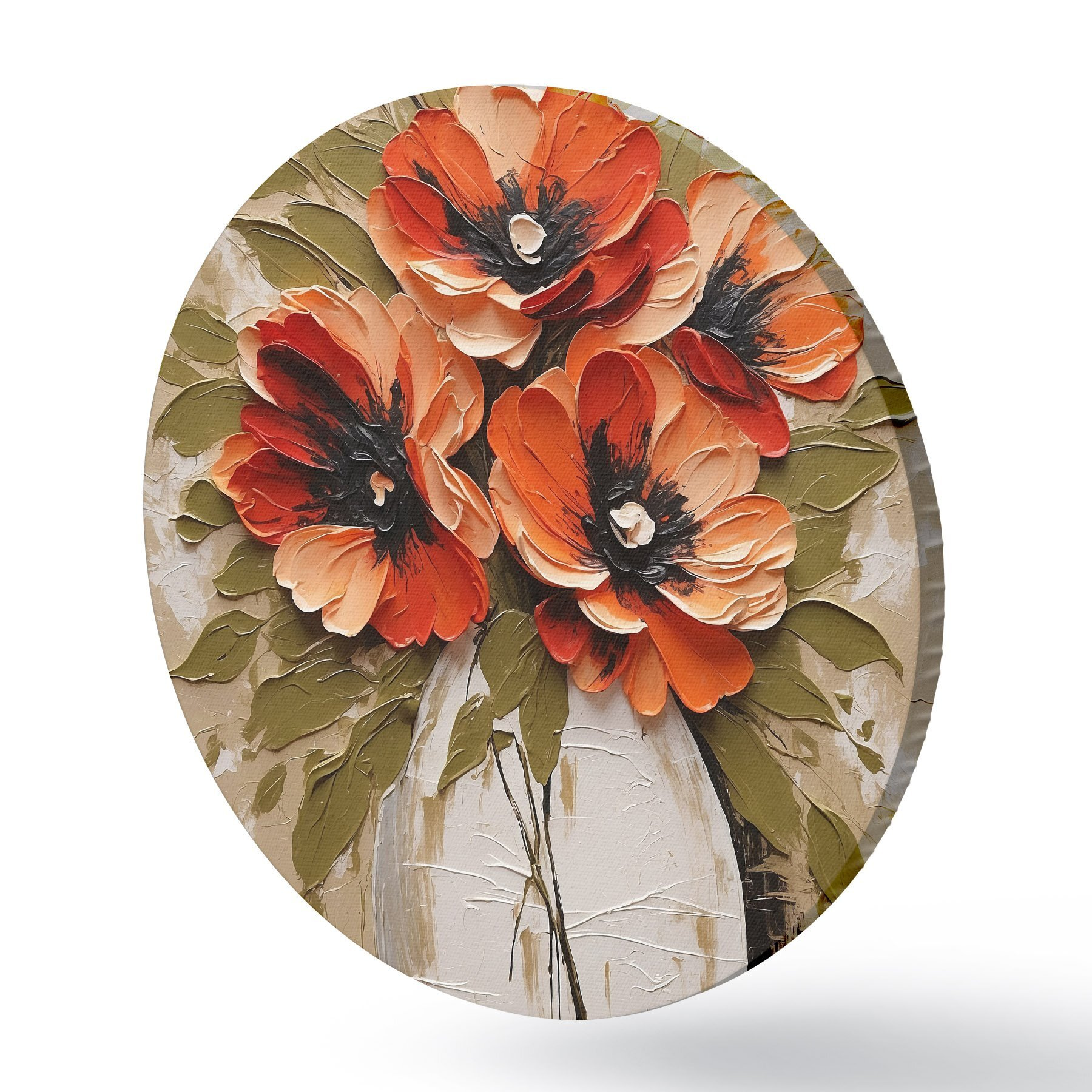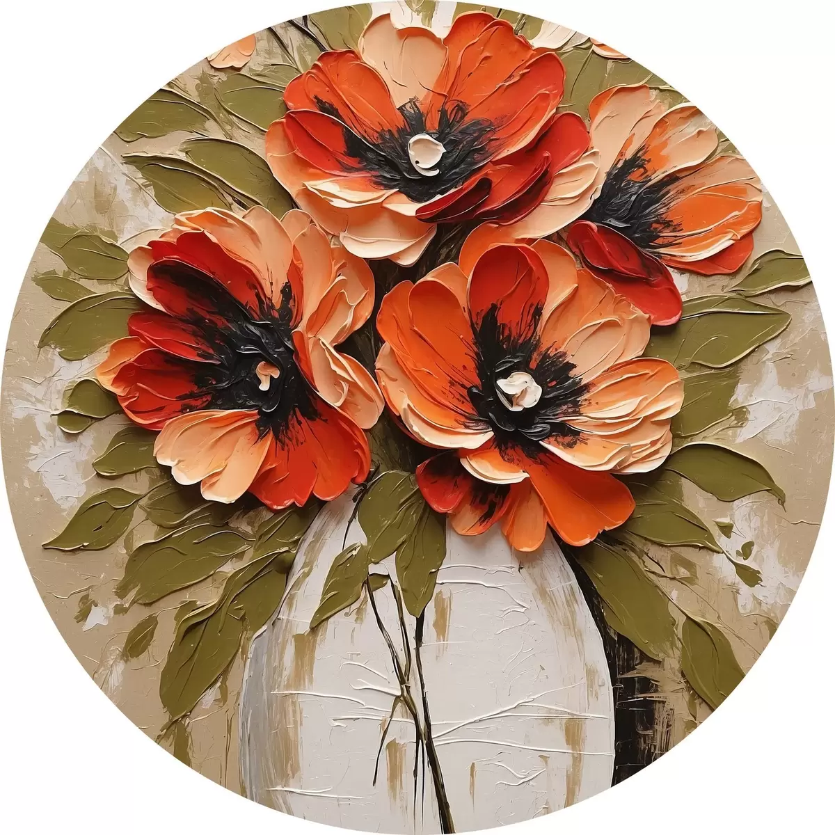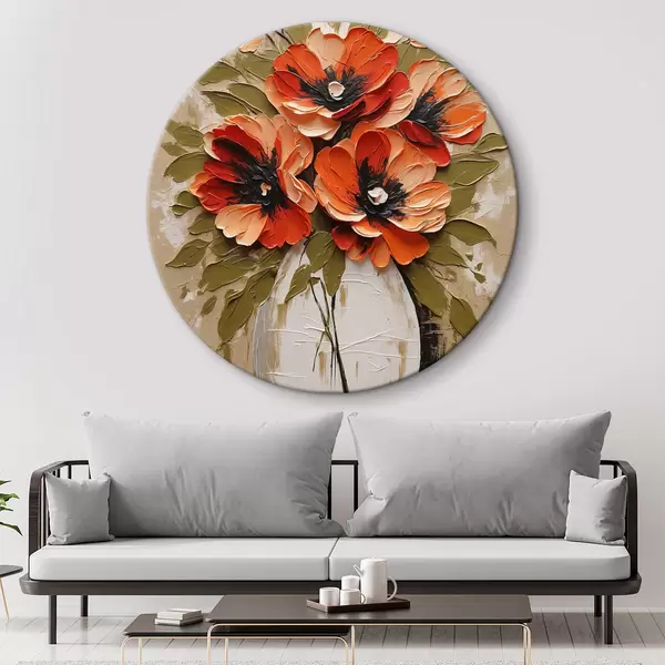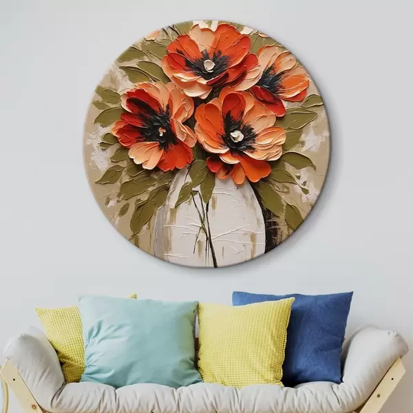 Apaļas gleznas Ziedi baltā vāzē uz rozā fona r38176