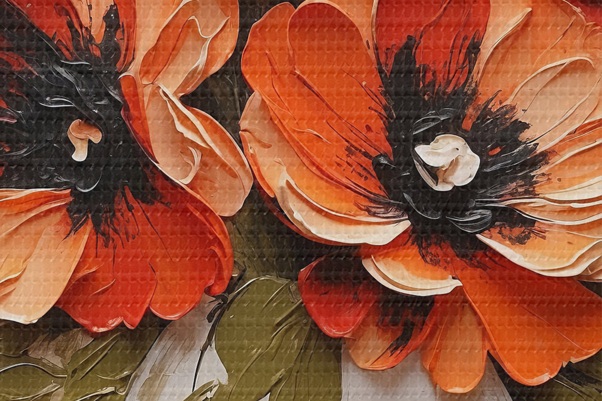Smalkais diegu pinums uz šī audekla atgādina profesionālu mākslinieku audeklu virsmu.