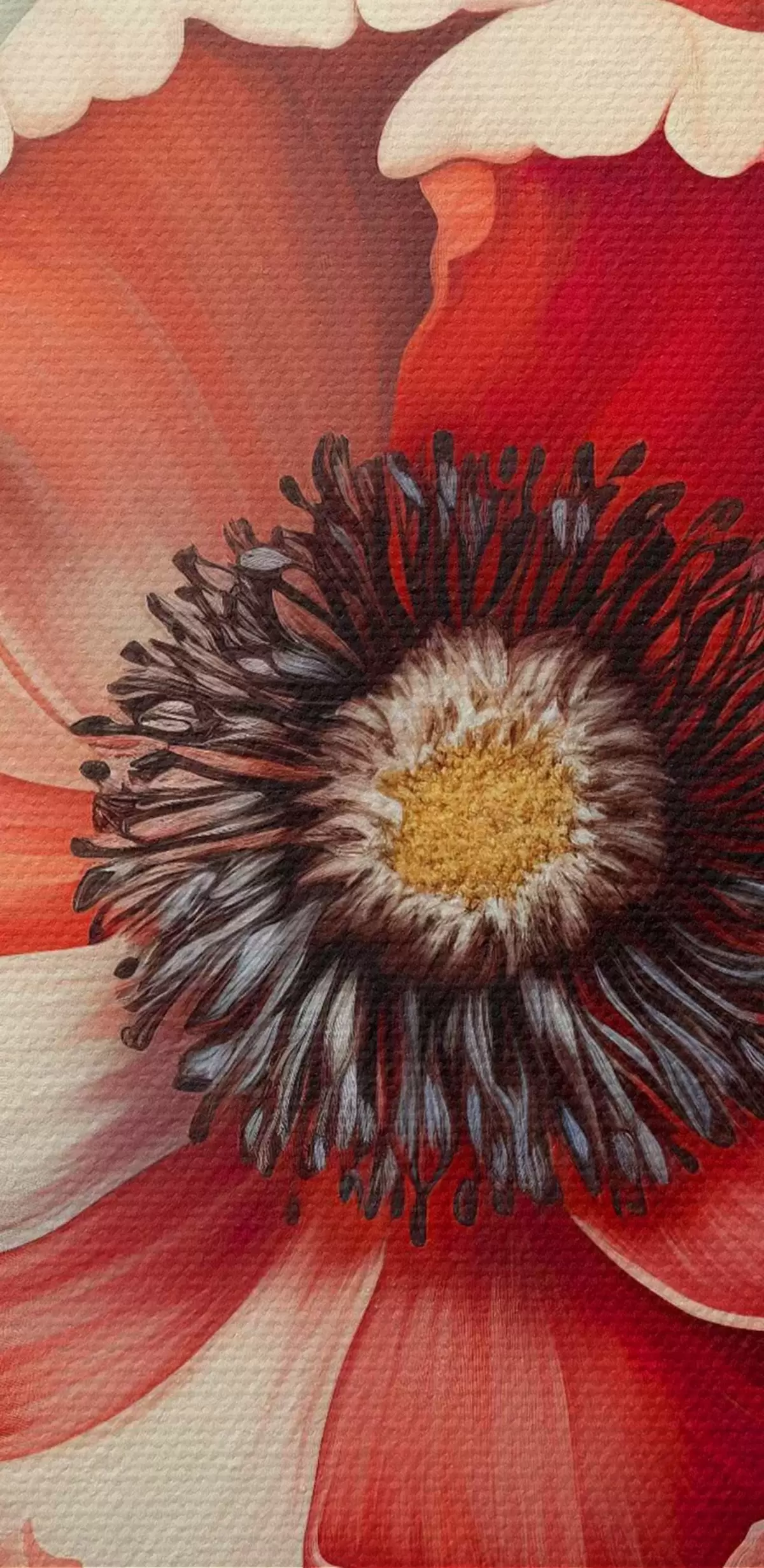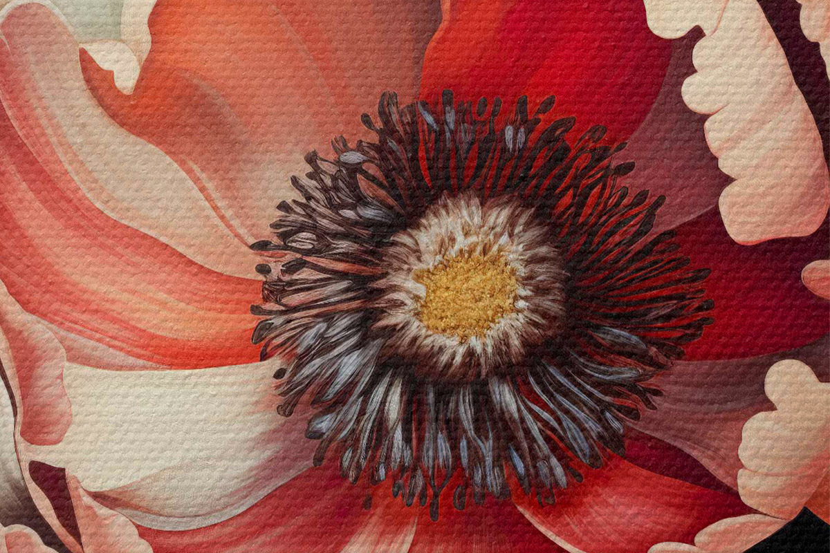 Smalkais diegu pinums uz šī audekla atgādina profesionālu mākslinieku audeklu virsmu.