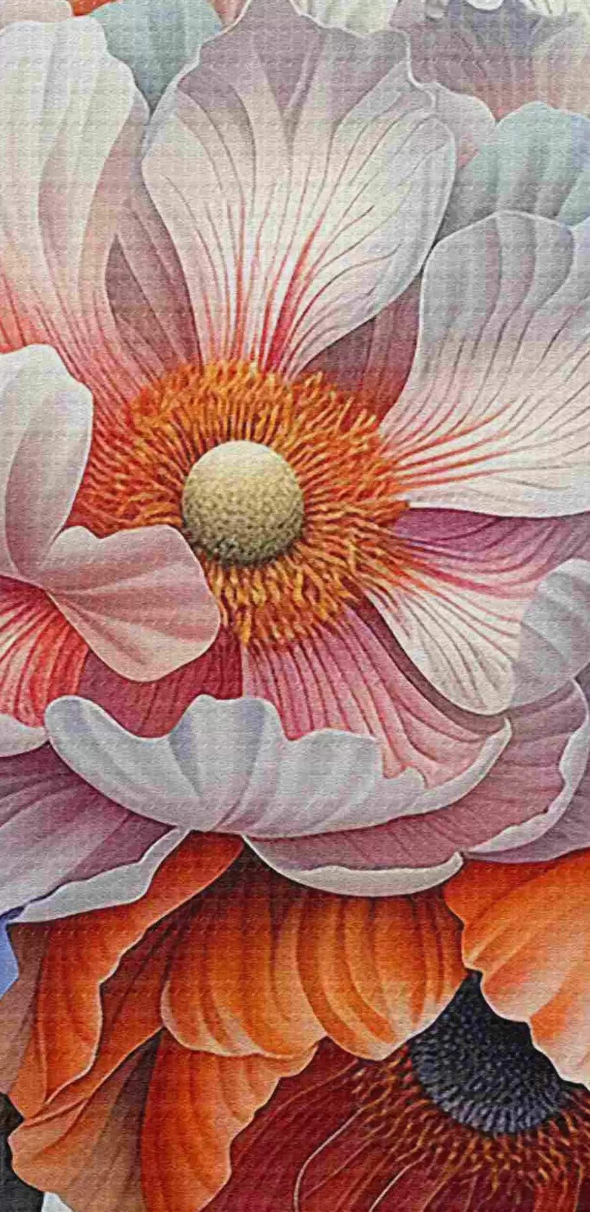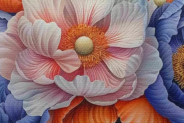 Smalkais diegu pinums uz šī audekla atgādina profesionālu mākslinieku audeklu virsmu.