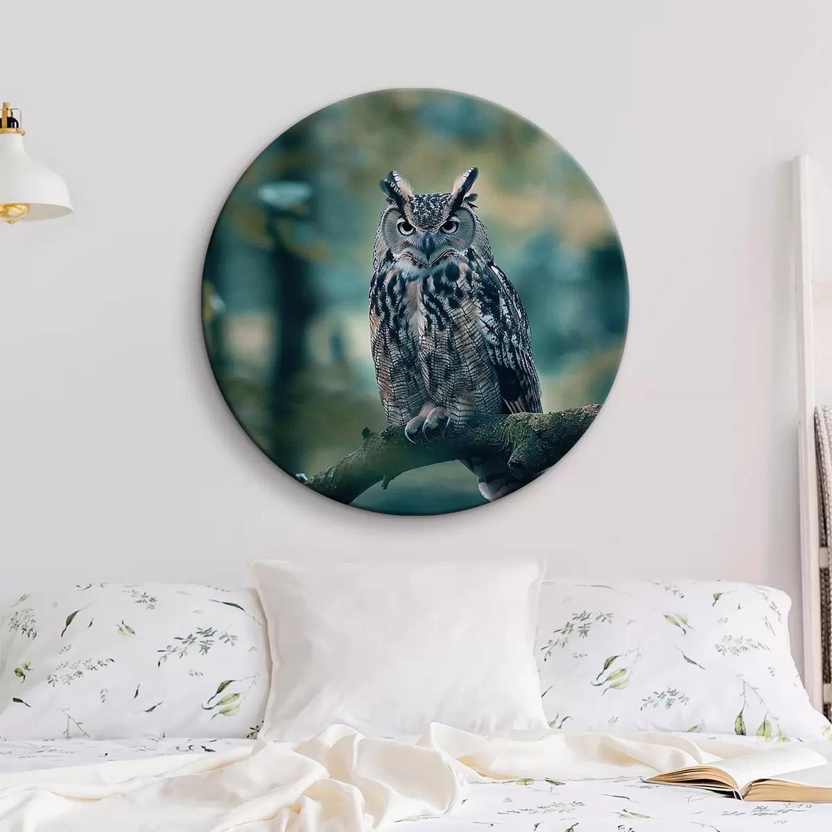 Apaļas gleznas Pūce sēž uz zara r38249