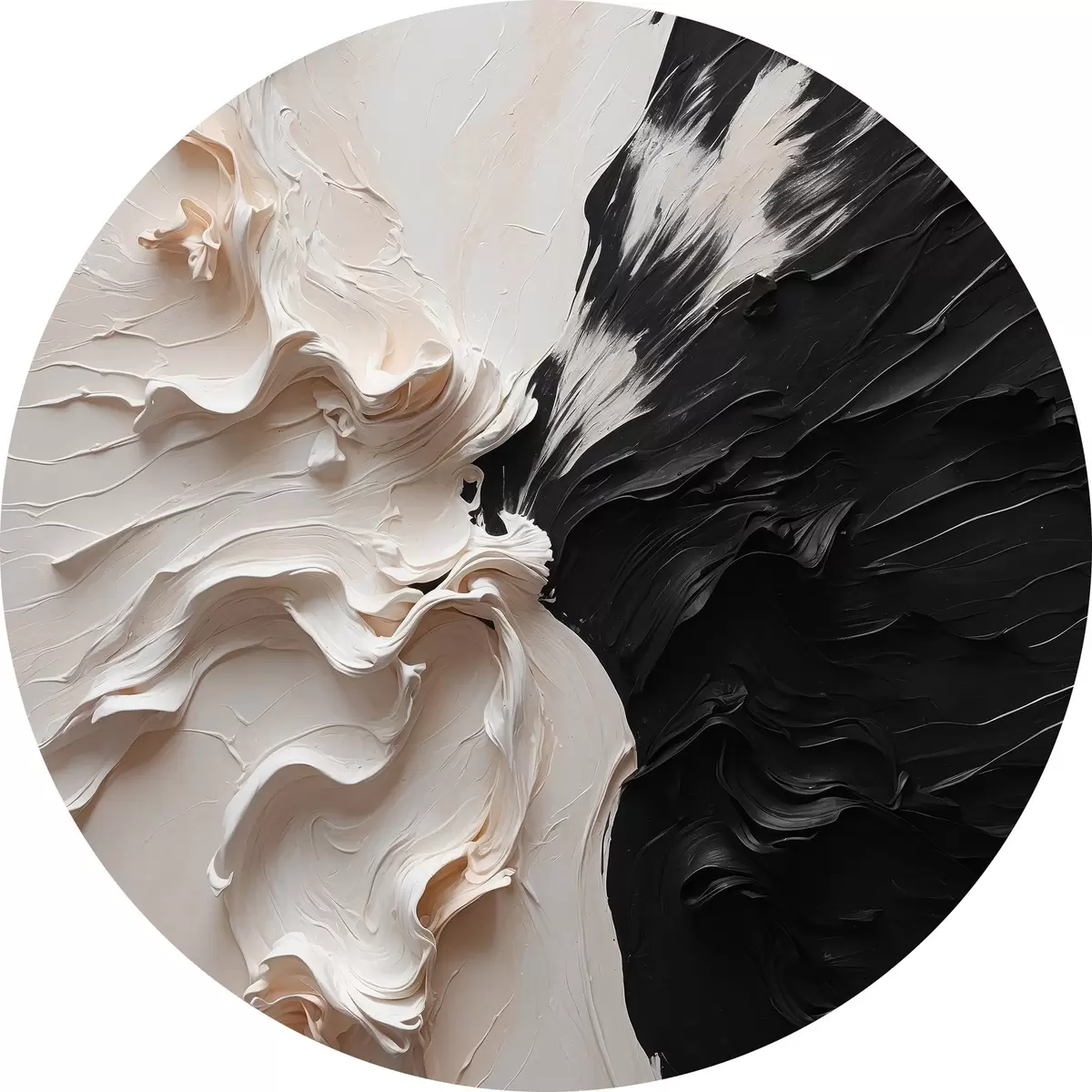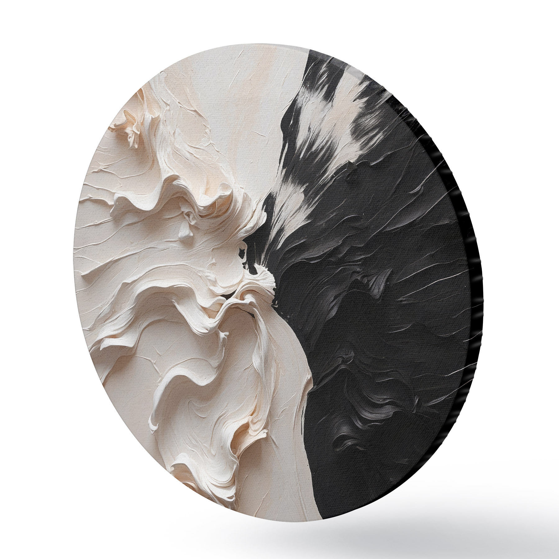 Apaļas gleznas Abstrakta eļļas glezna baltā un melnā krāsā r38300