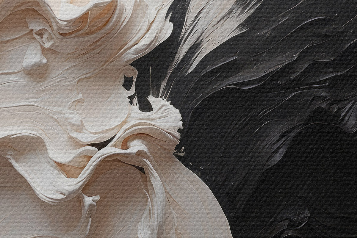 Attēls Abstrakta eļļas glezna baltā un melnā krāsā Nr r38300