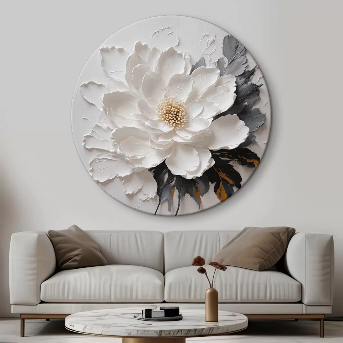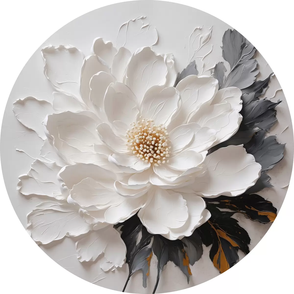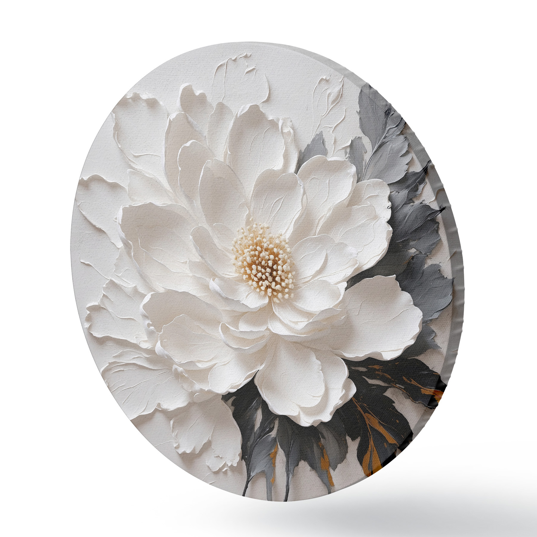 Apaļas gleznas Liels apjomīgs balts zieds r38304