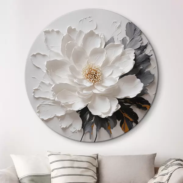 Apaļas gleznas Liels apjomīgs balts zieds r38304