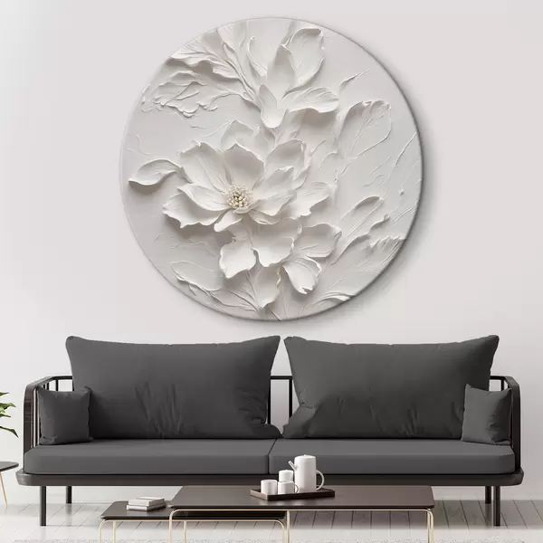 Apaļas gleznas Balts zieds uz balta fona eļļā r38305