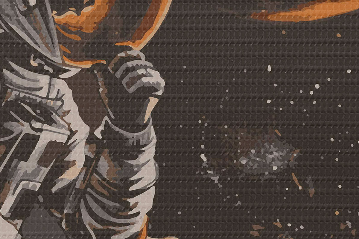 Smalkais diegu pinums uz šī audekla atgādina profesionālu mākslinieku audeklu virsmu.
