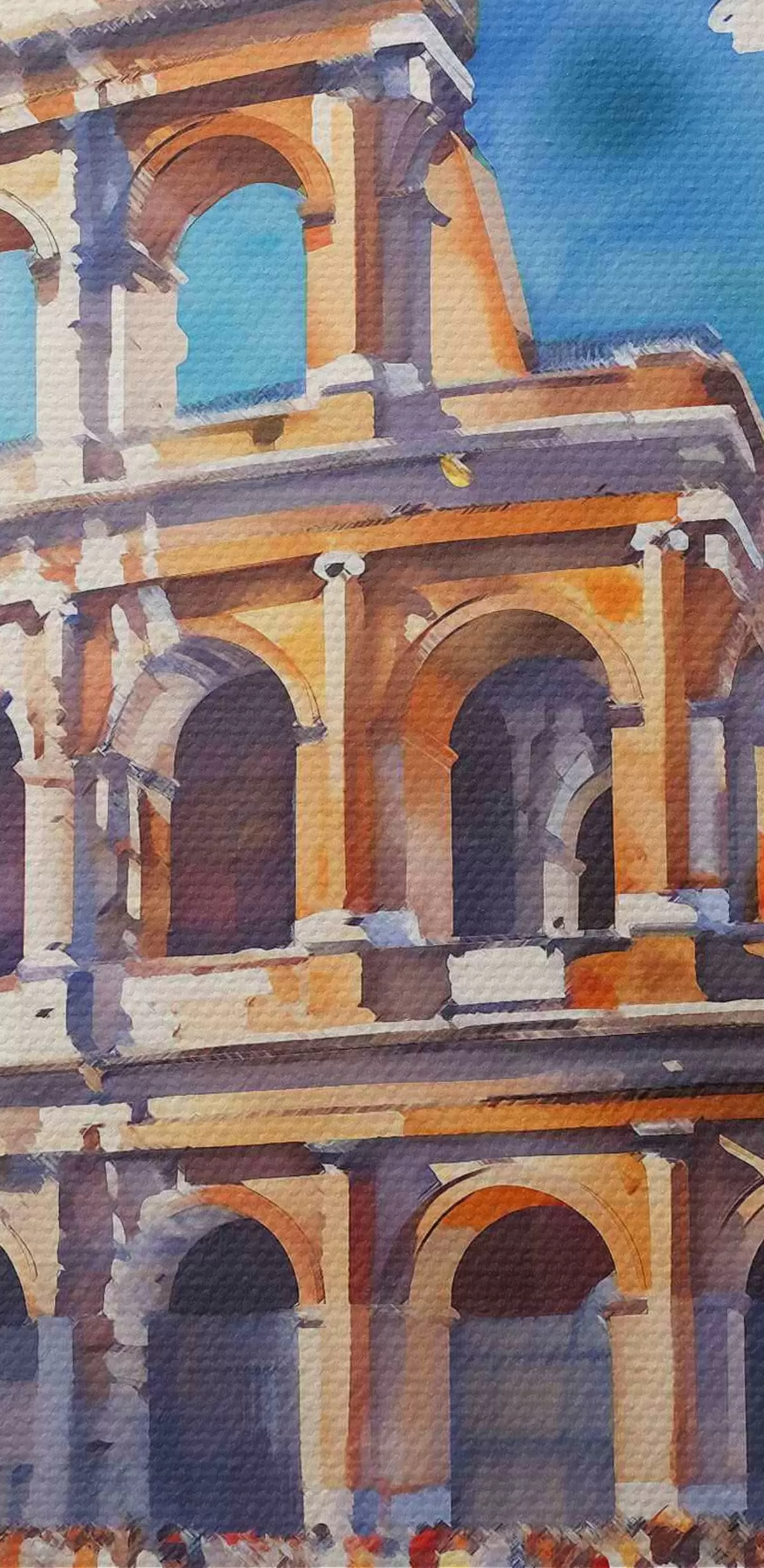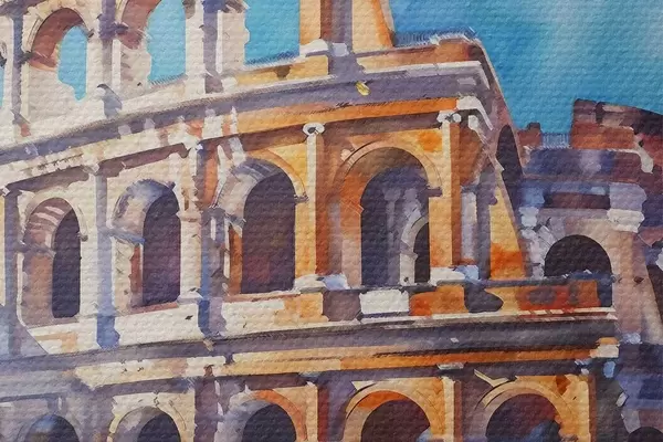 Attēls Lielas ēkas akvarelis ar daudzām arkām Nr r38326