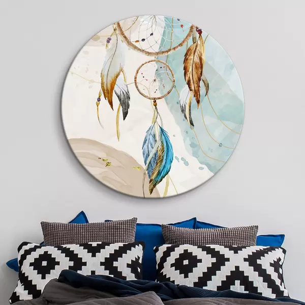 Apaļas gleznas akvarelis, sapņu ķērājs, spalvas, pastelis r38330