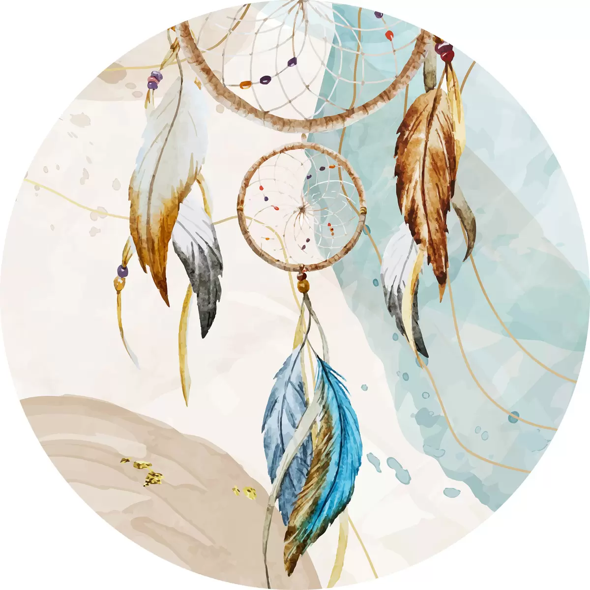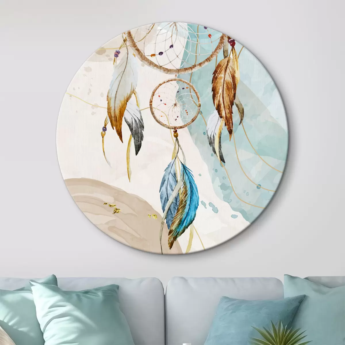 Apaļas gleznas akvarelis, sapņu ķērājs, spalvas, pastelis r38330