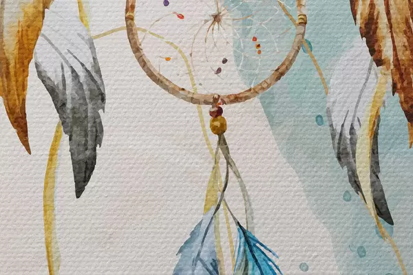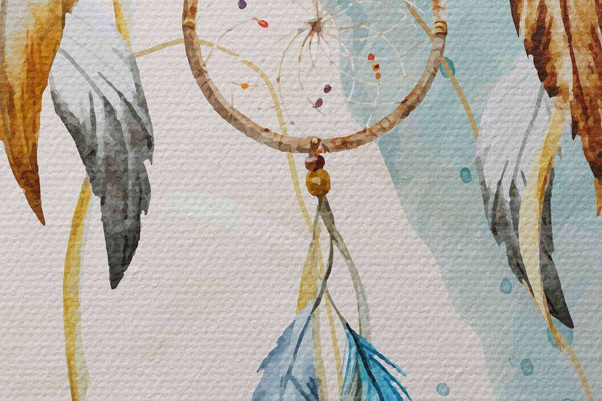 Attēls akvarelis, sapņu ķērājs, spalvas, pastelis Nr r38330