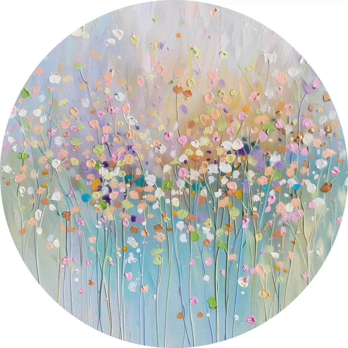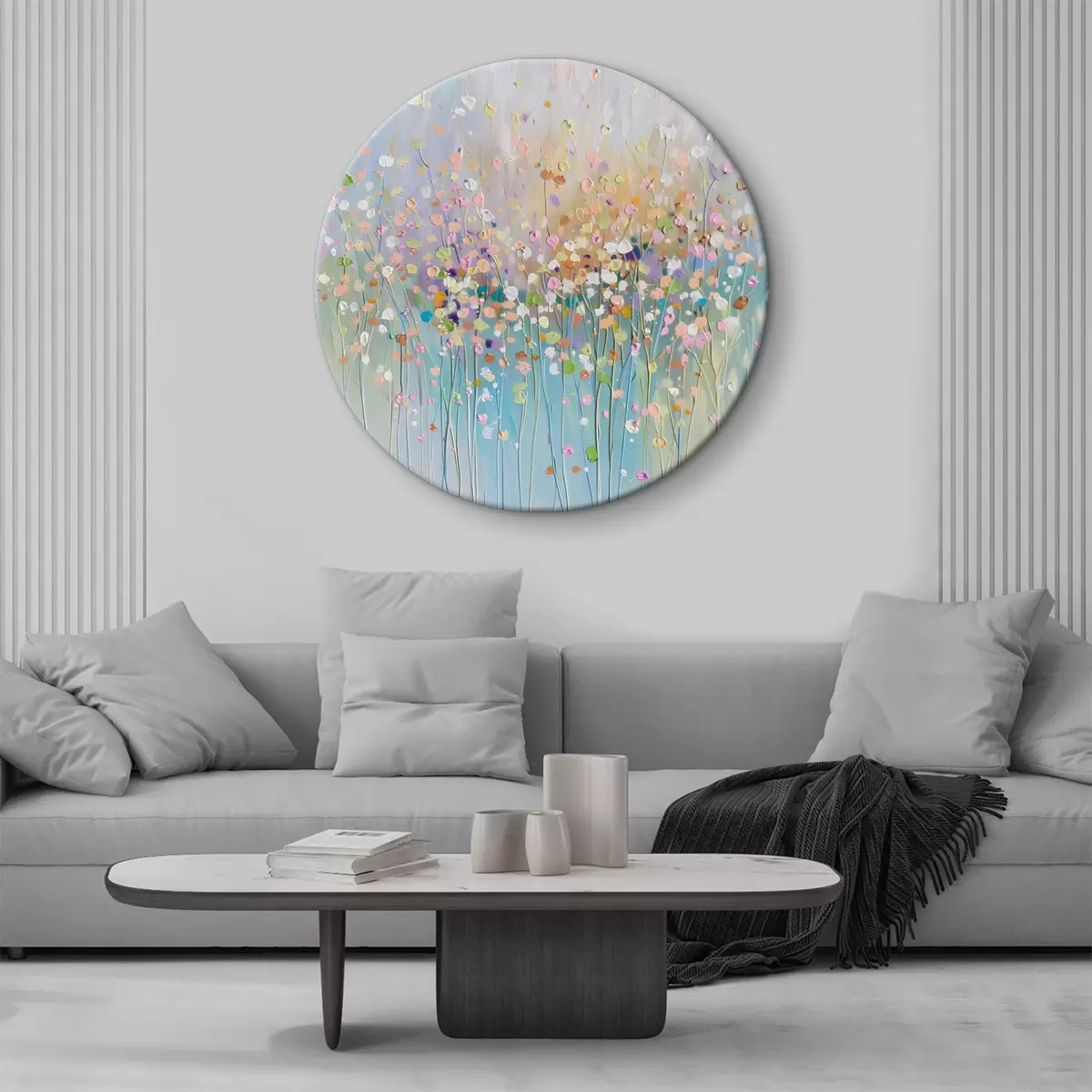 Apaļas gleznas Krāsaina sausu ziedu apdrukāta tekstūra r38426