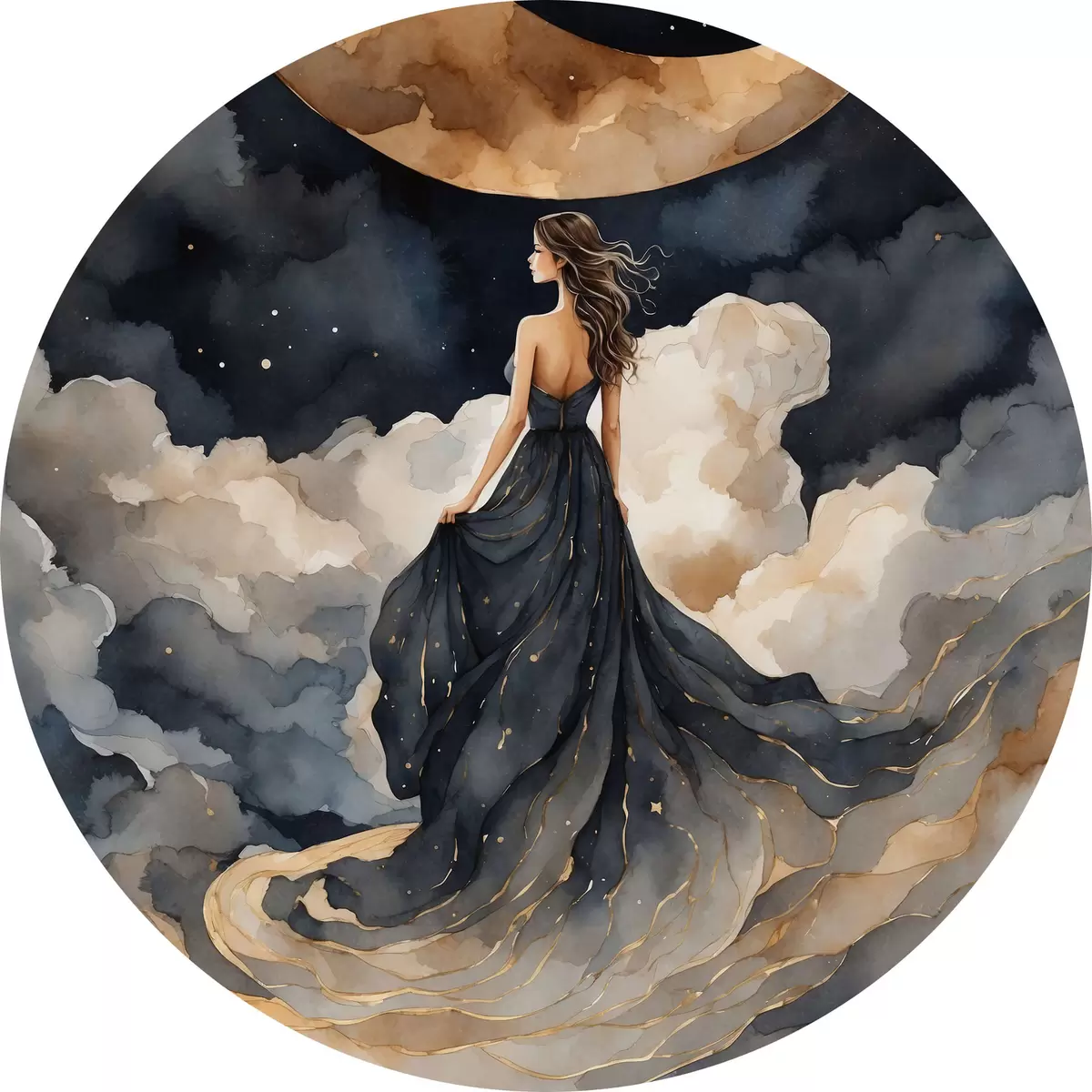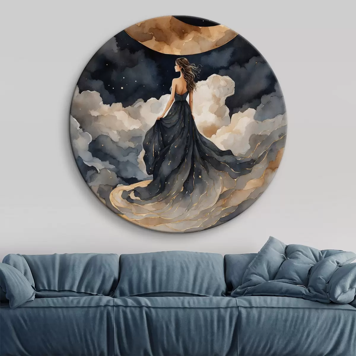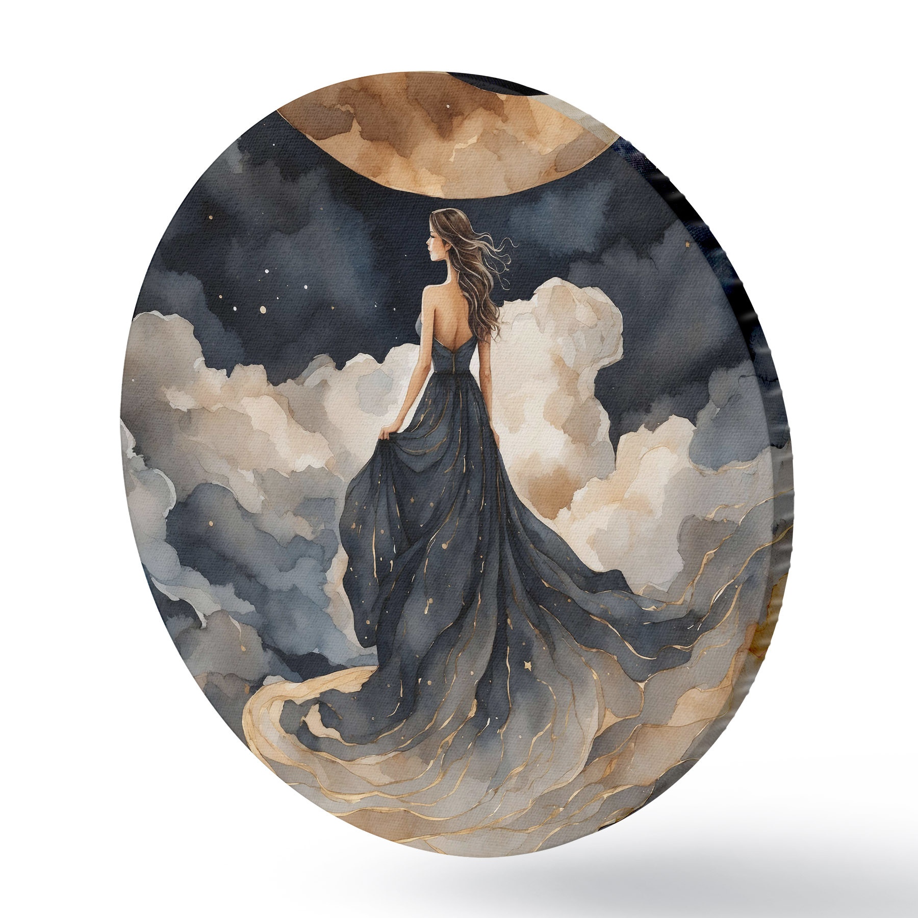 Attēls Sieviete zilā kleitā un mēness debesīs Nr r38428
