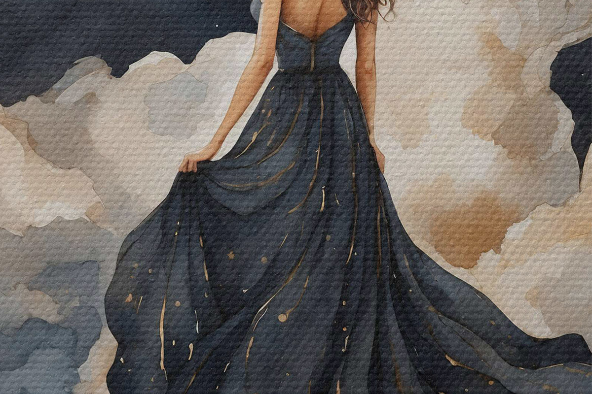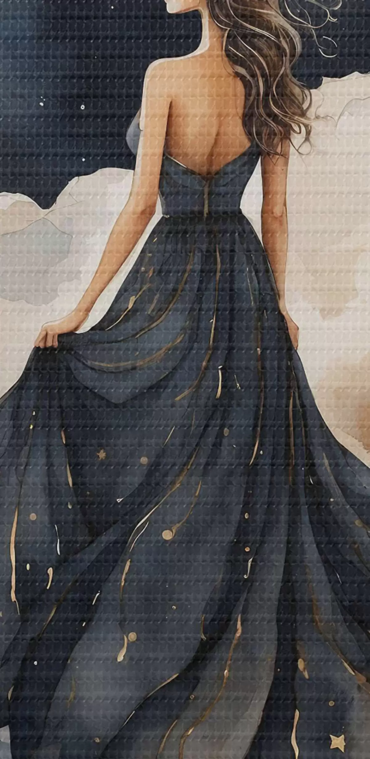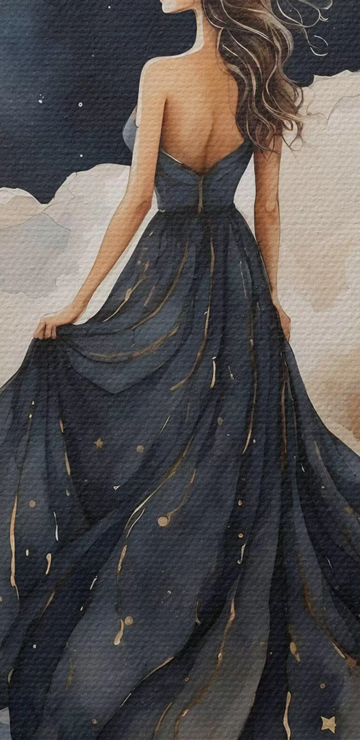 Attēls Sieviete zilā kleitā un mēness debesīs Nr r38428