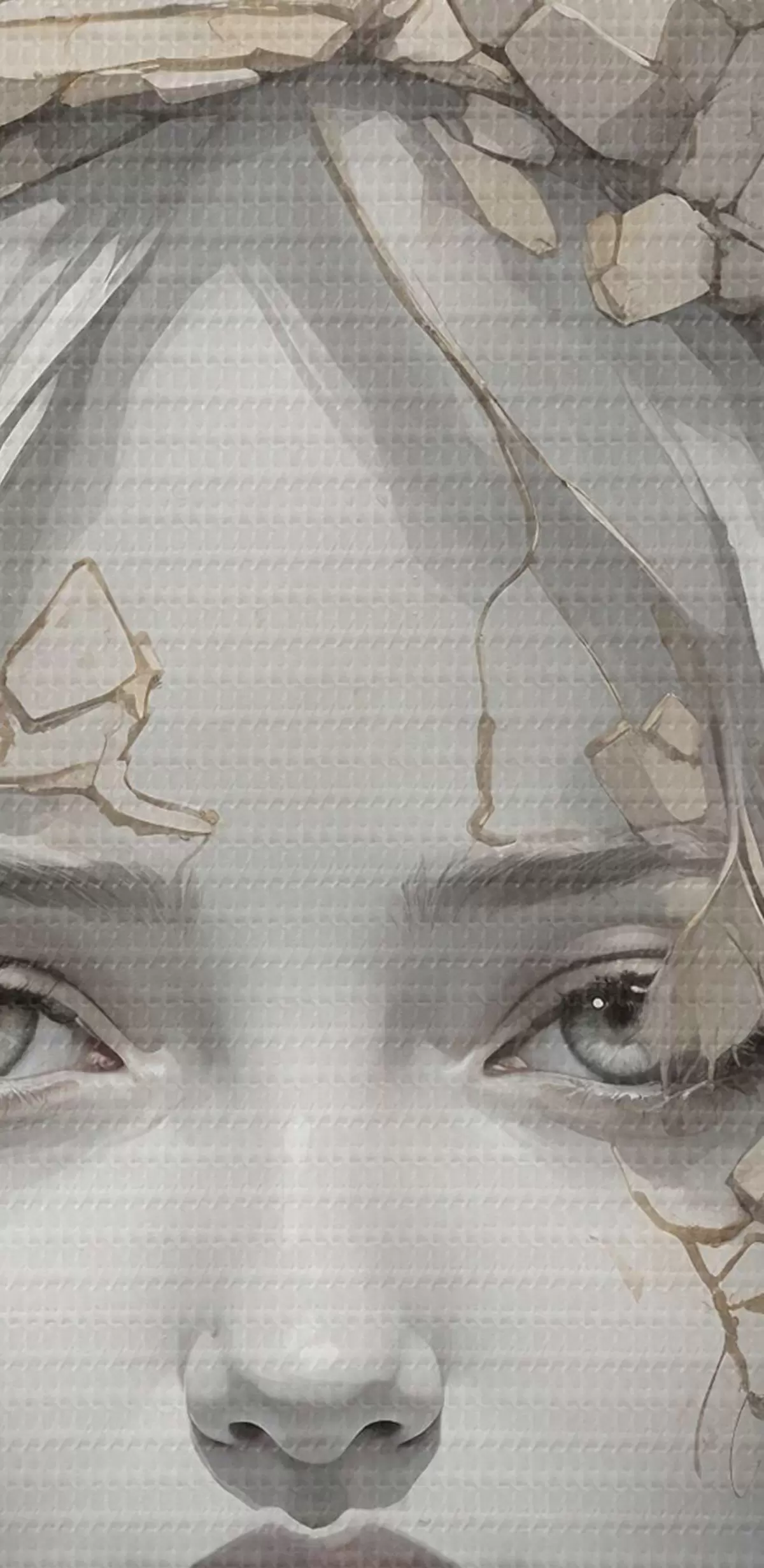 Smalkais diegu pinums uz šī audekla atgādina profesionālu mākslinieku audeklu virsmu.