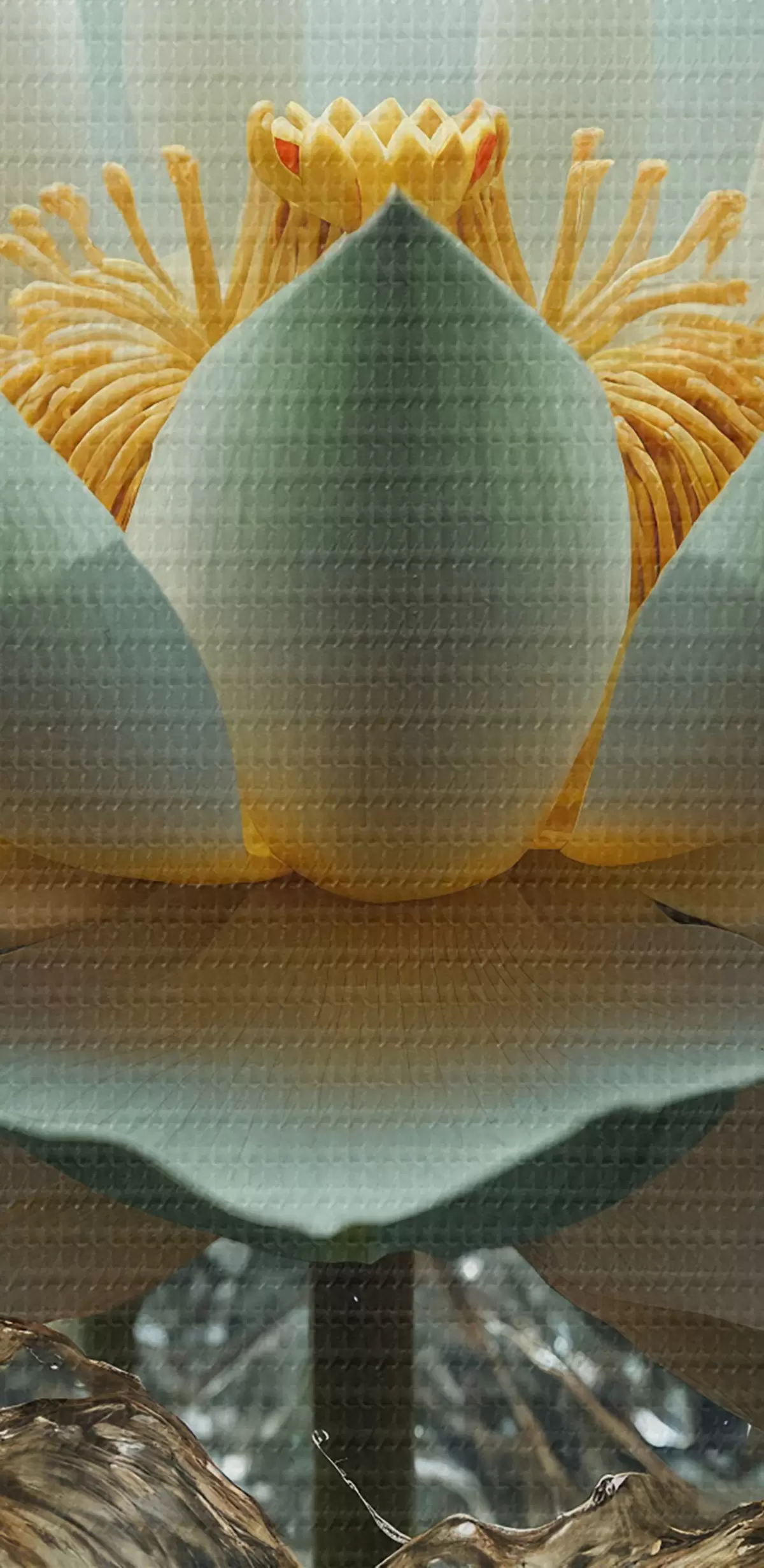 Lai izstieptu audeklu uz nestuvēm, nebojājot attēlu, mēs izmantojam spoguļattēlu.