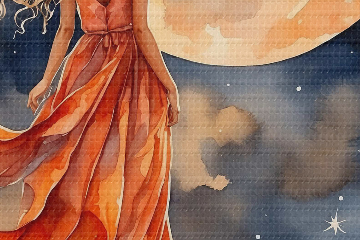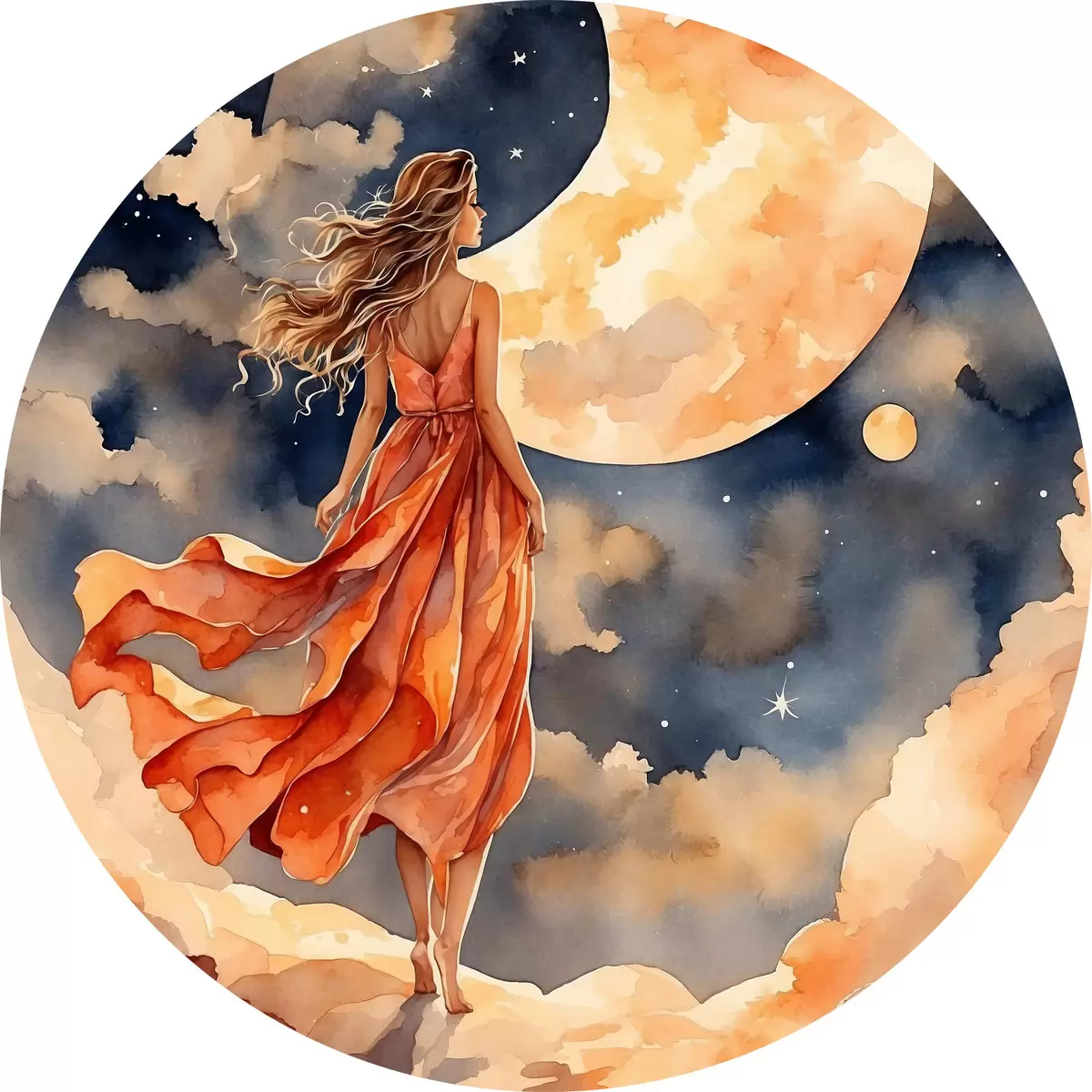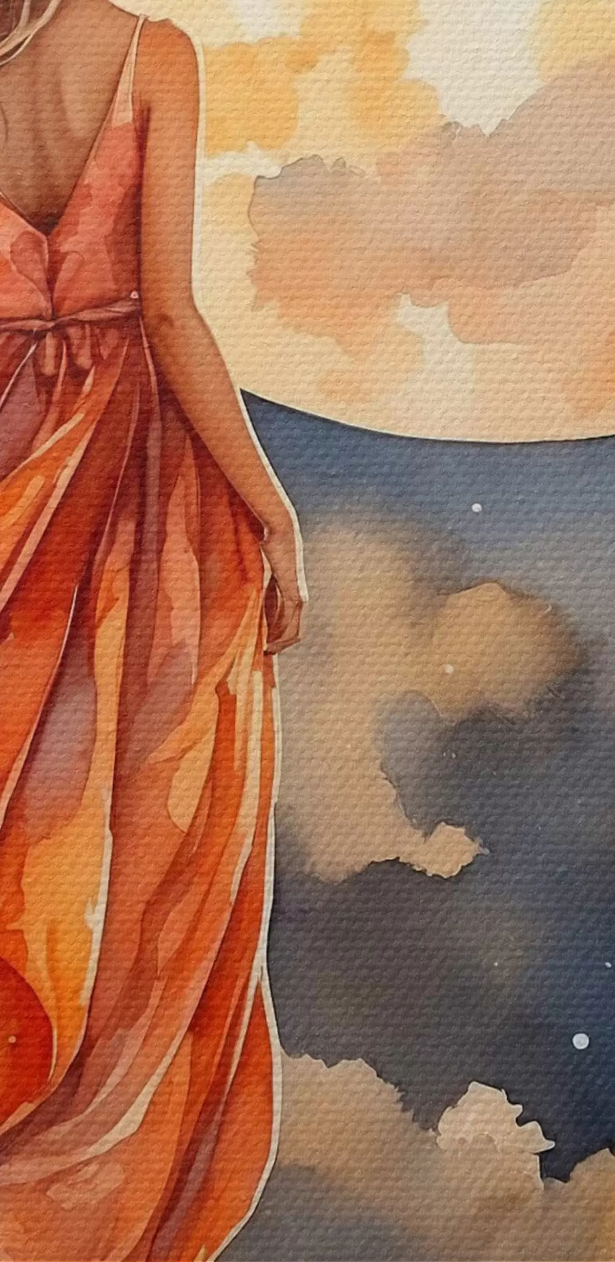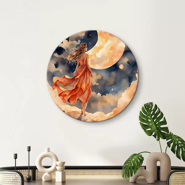 Attēls Sieviete kleitā, kas staigā pa mākoni Nr r38440