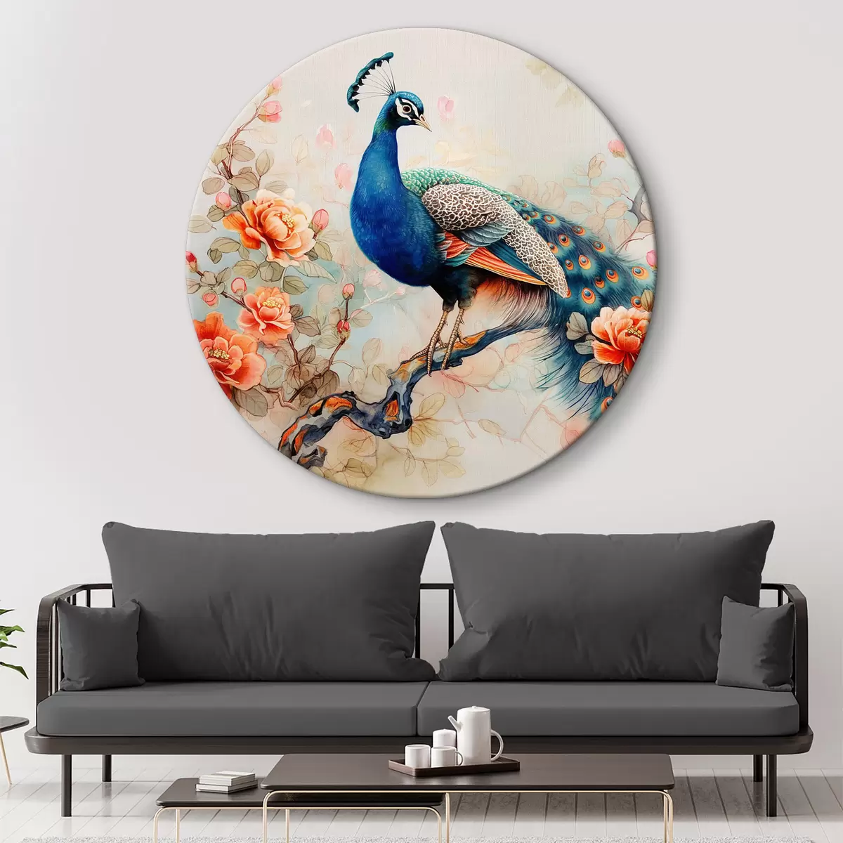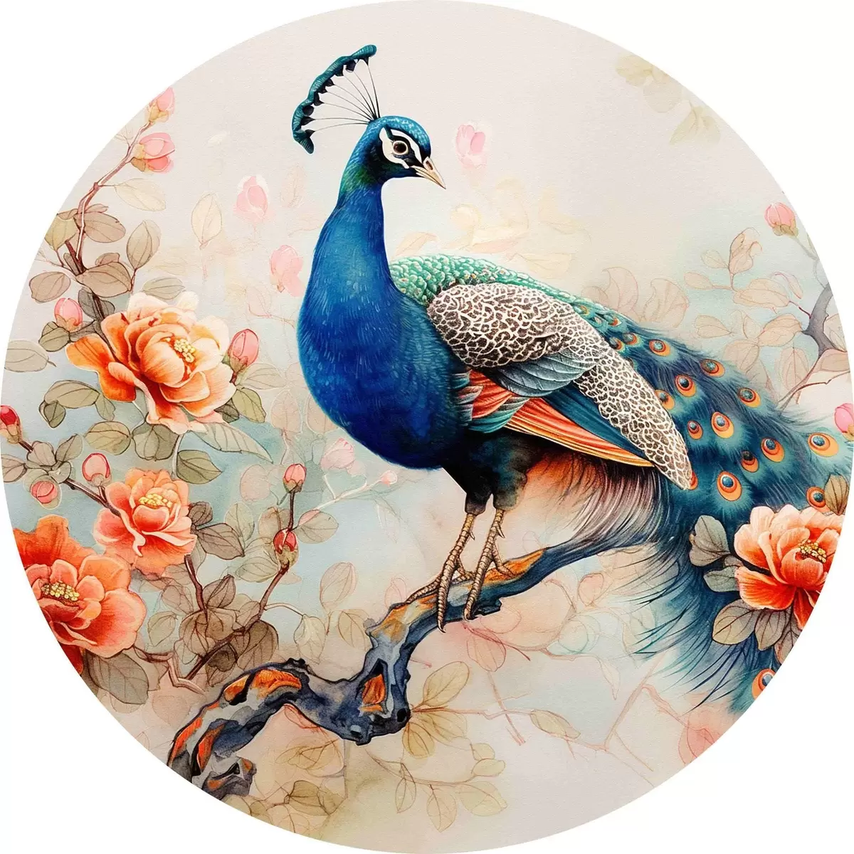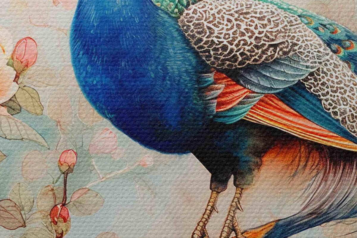 Attēls Glezna, kurā attēlots pāvs uz zara ar ziediem Nr r38452