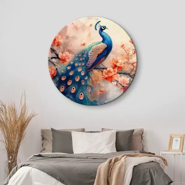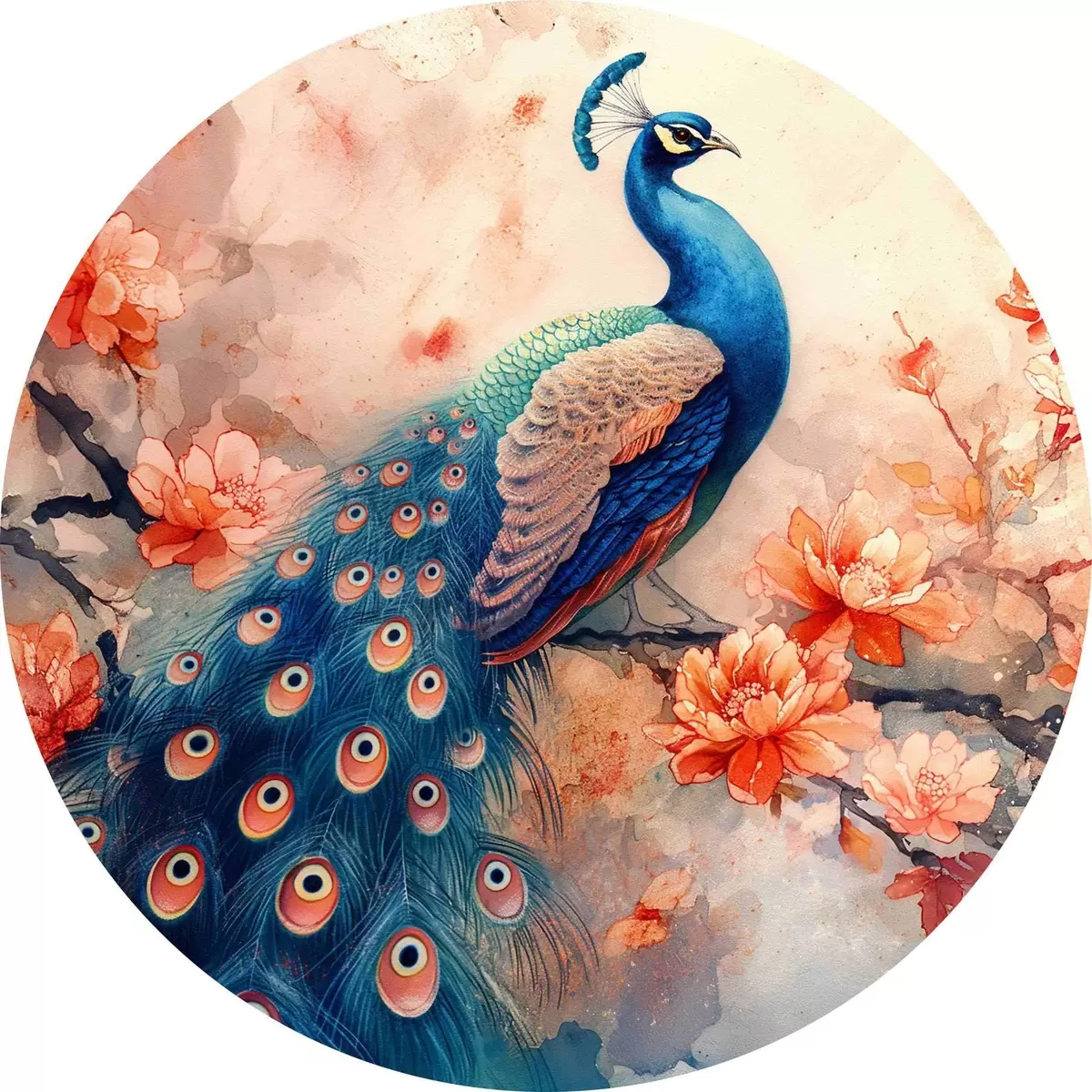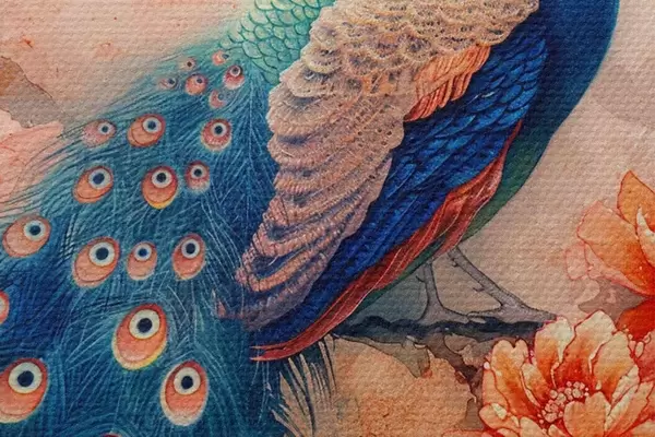Attēls Glezna, kurā attēlots pāvs uz zara ar ziediem Nr r38455