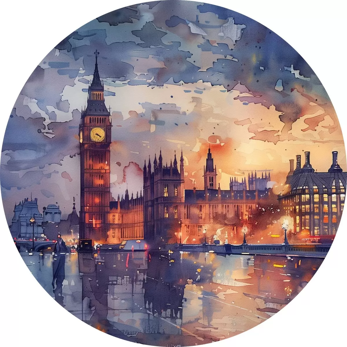 Apaļas gleznas Bigben Londonas akvareļu glezna r38473