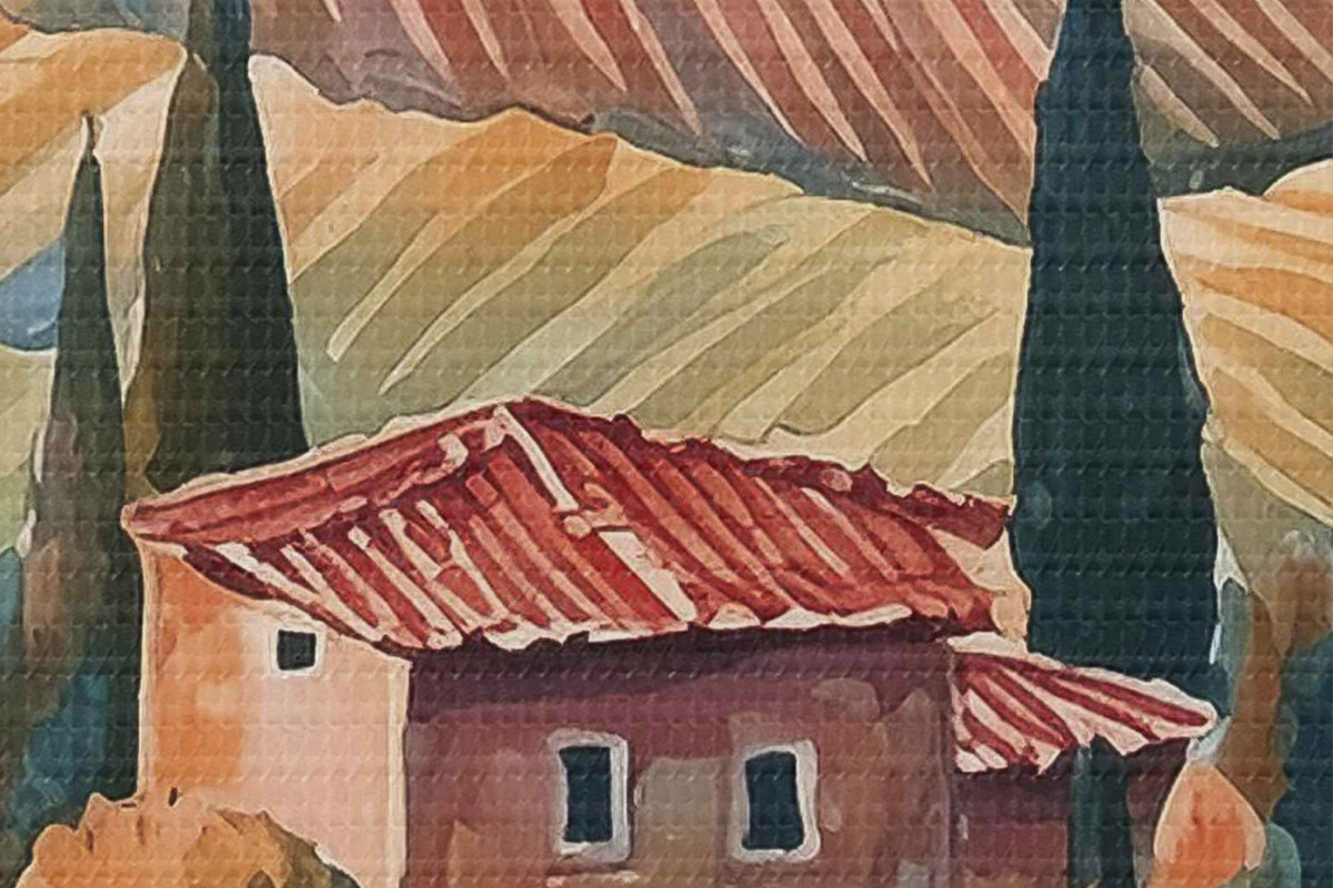 Smalkais diegu pinums uz šī audekla atgādina profesionālu mākslinieku audeklu virsmu.