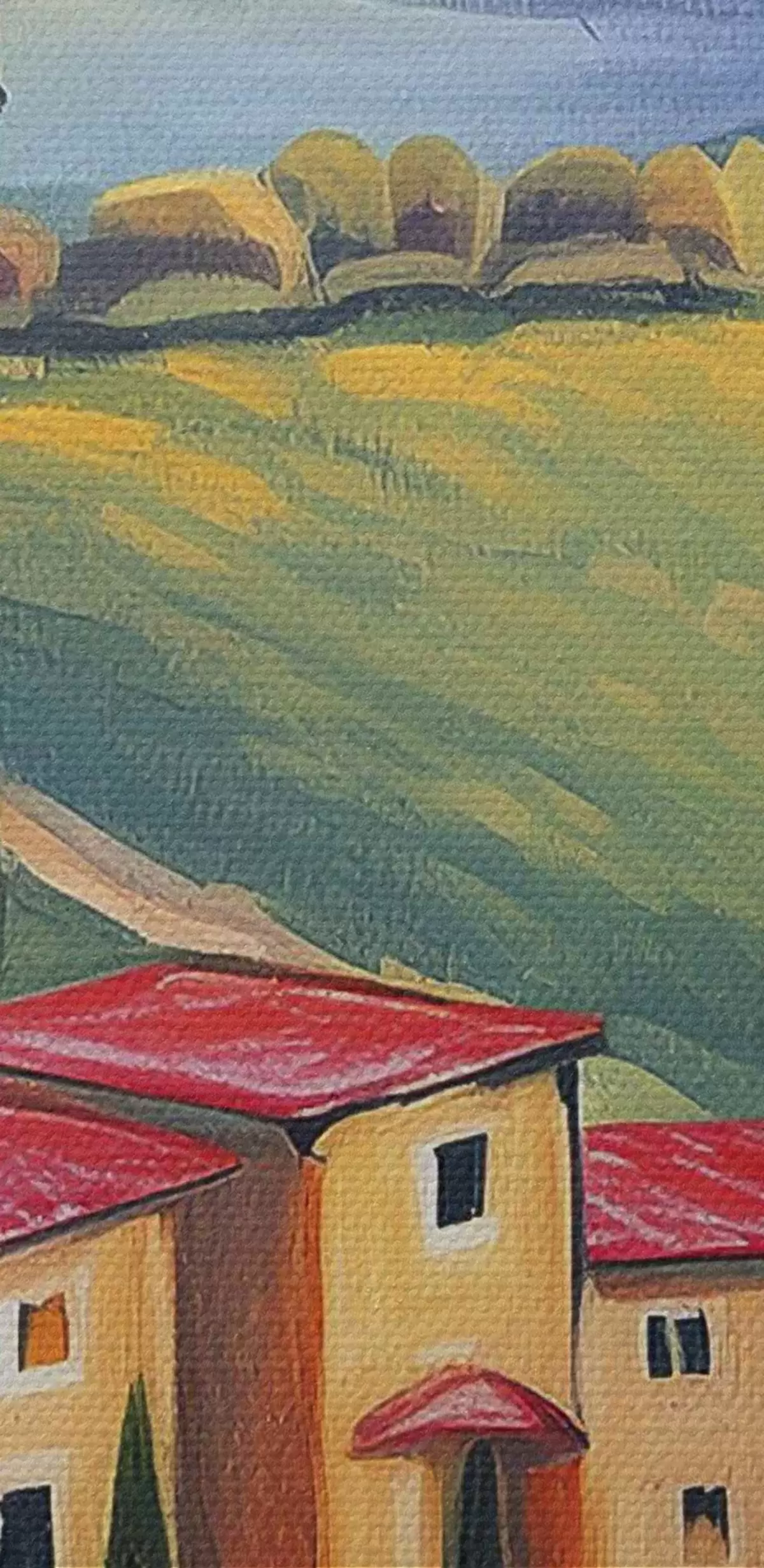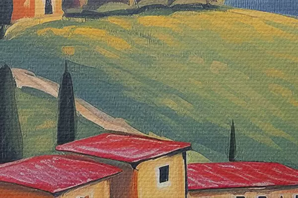 Attēls Toskānas ainavas, Itālija, akrila māksla, vecās mājas, lauki, vasara Nr r38488