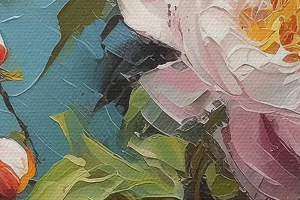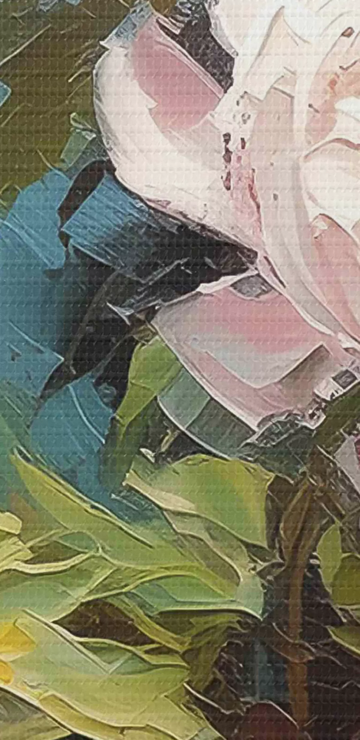 Smalkais diegu pinums uz šī audekla atgādina profesionālu mākslinieku audeklu virsmu.